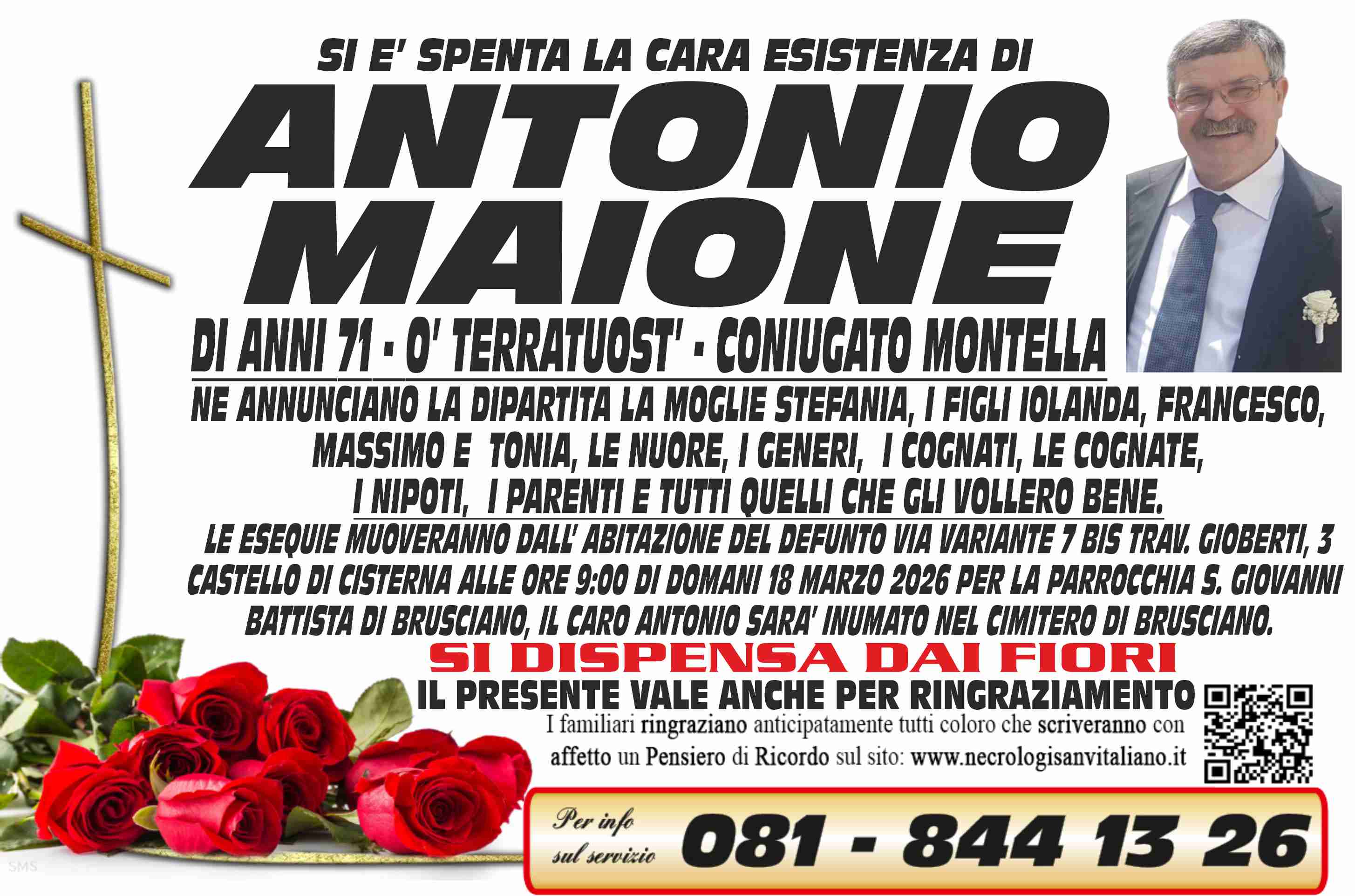 I familiari ringraziano anticipatamente tutti coloro che parteciperanno alla cerimonia funebre