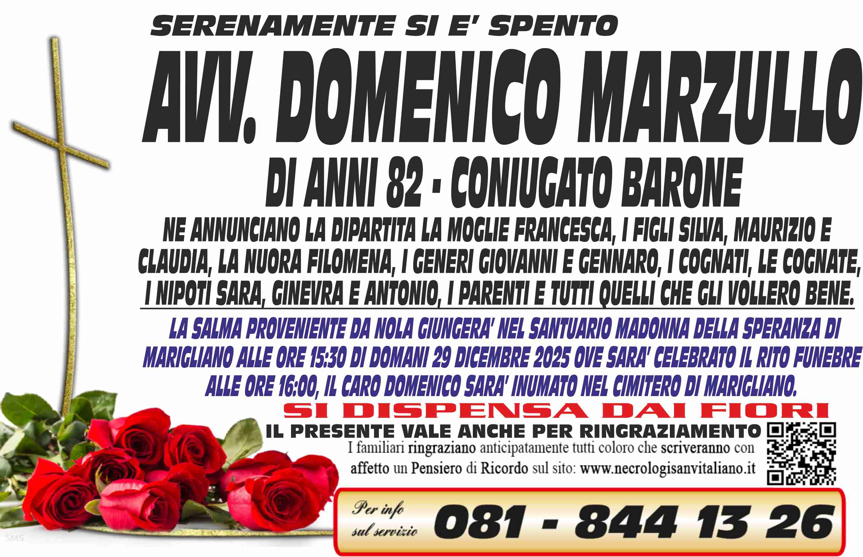 I familiari ringraziano anticipatamente tutti coloro che parteciperanno alla cerimonia funebre