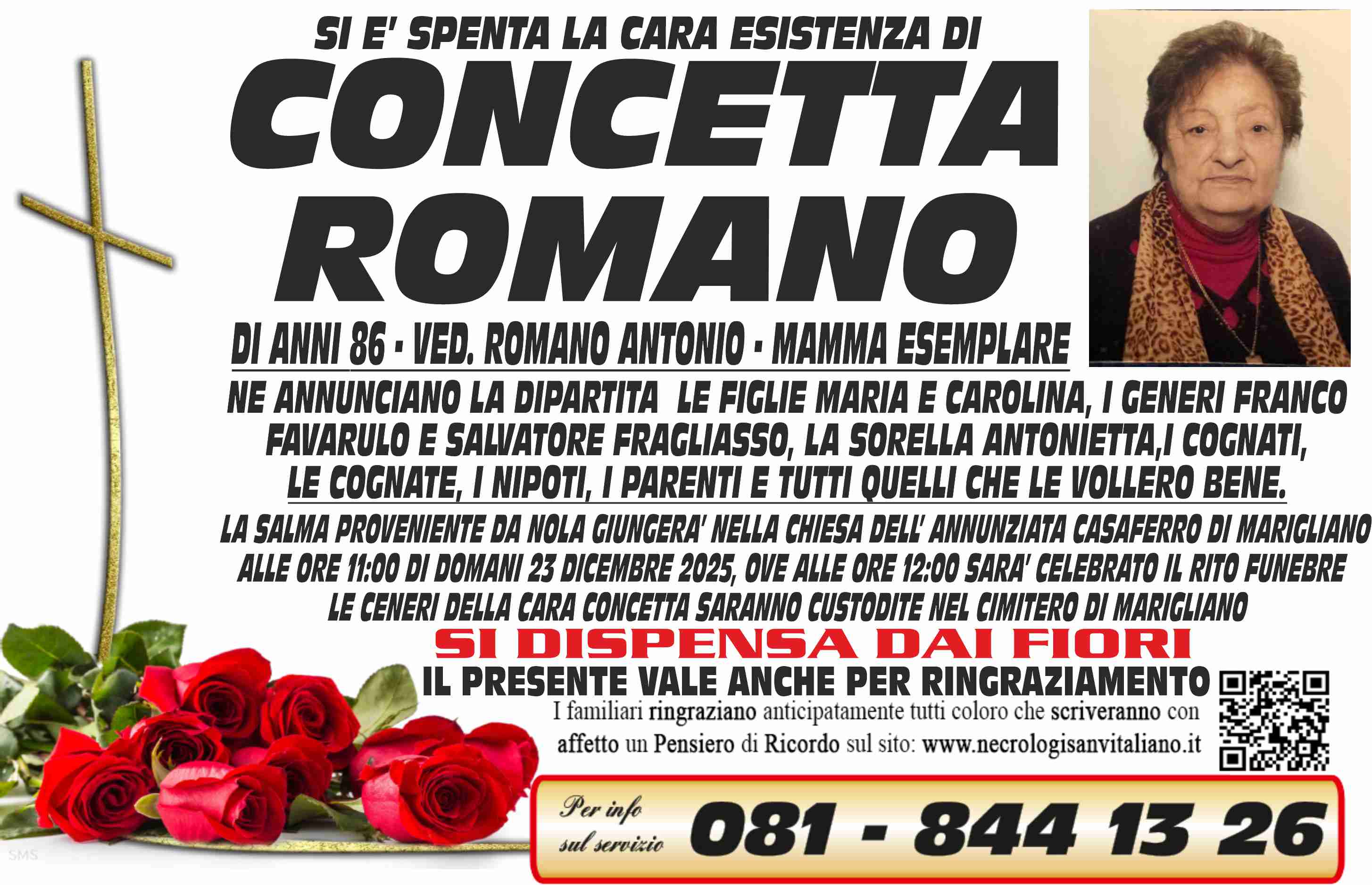 I familiari ringraziano anticipatamente tutti coloro che parteciperanno alla cerimonia funebre