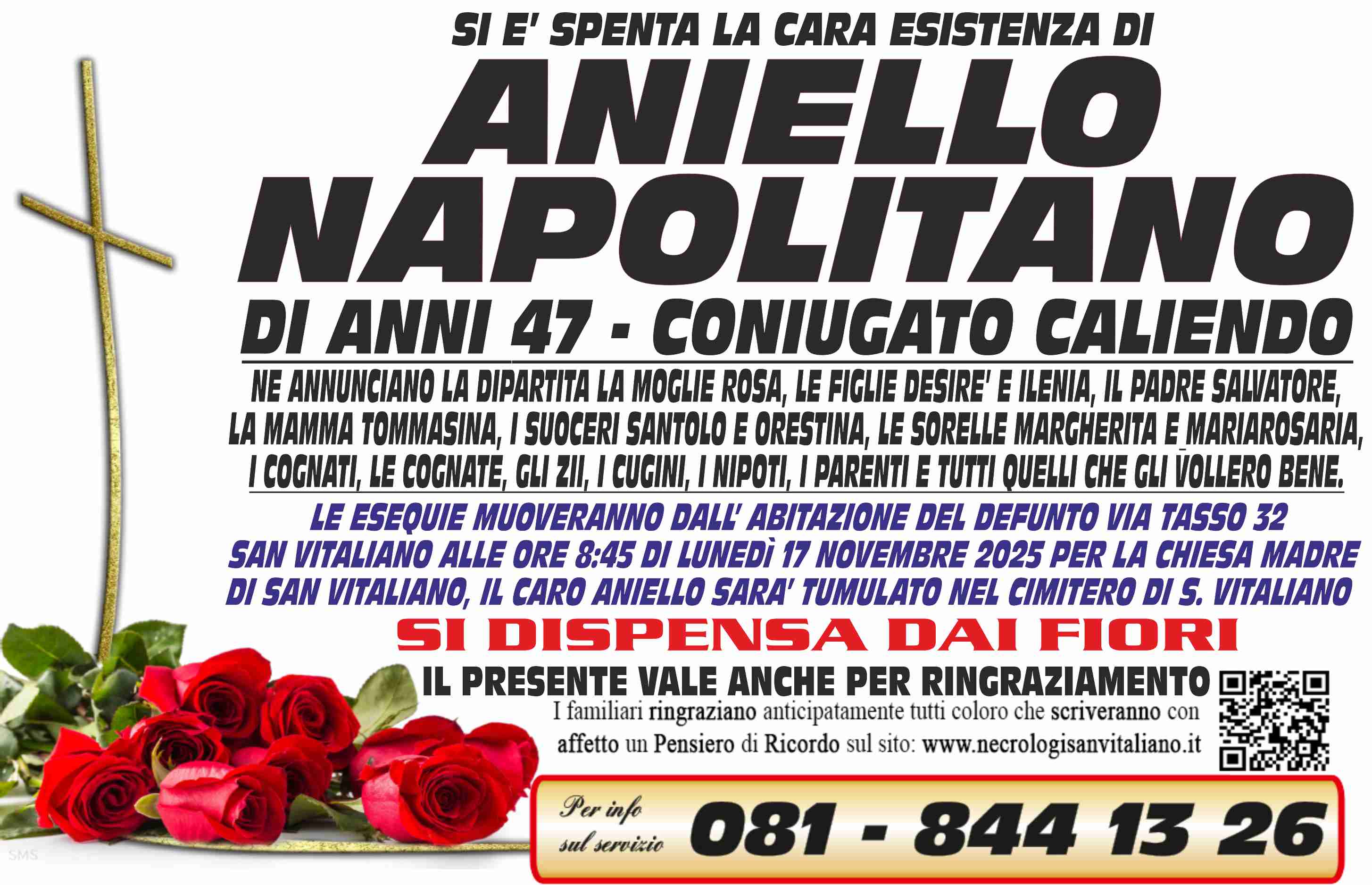 I familiari ringraziano anticipatamente tutti coloro che parteciperanno alla cerimonia funebre