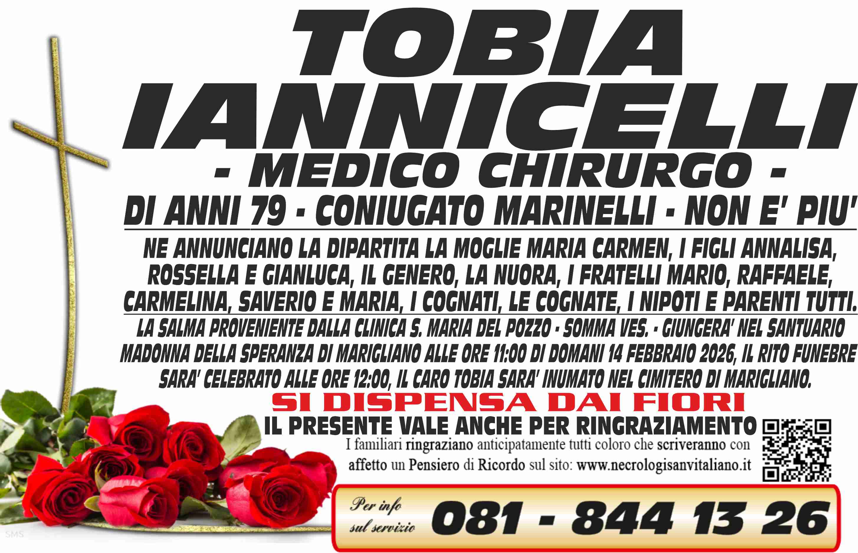 I familiari ringraziano anticipatamente tutti coloro che parteciperanno alla cerimonia funebre