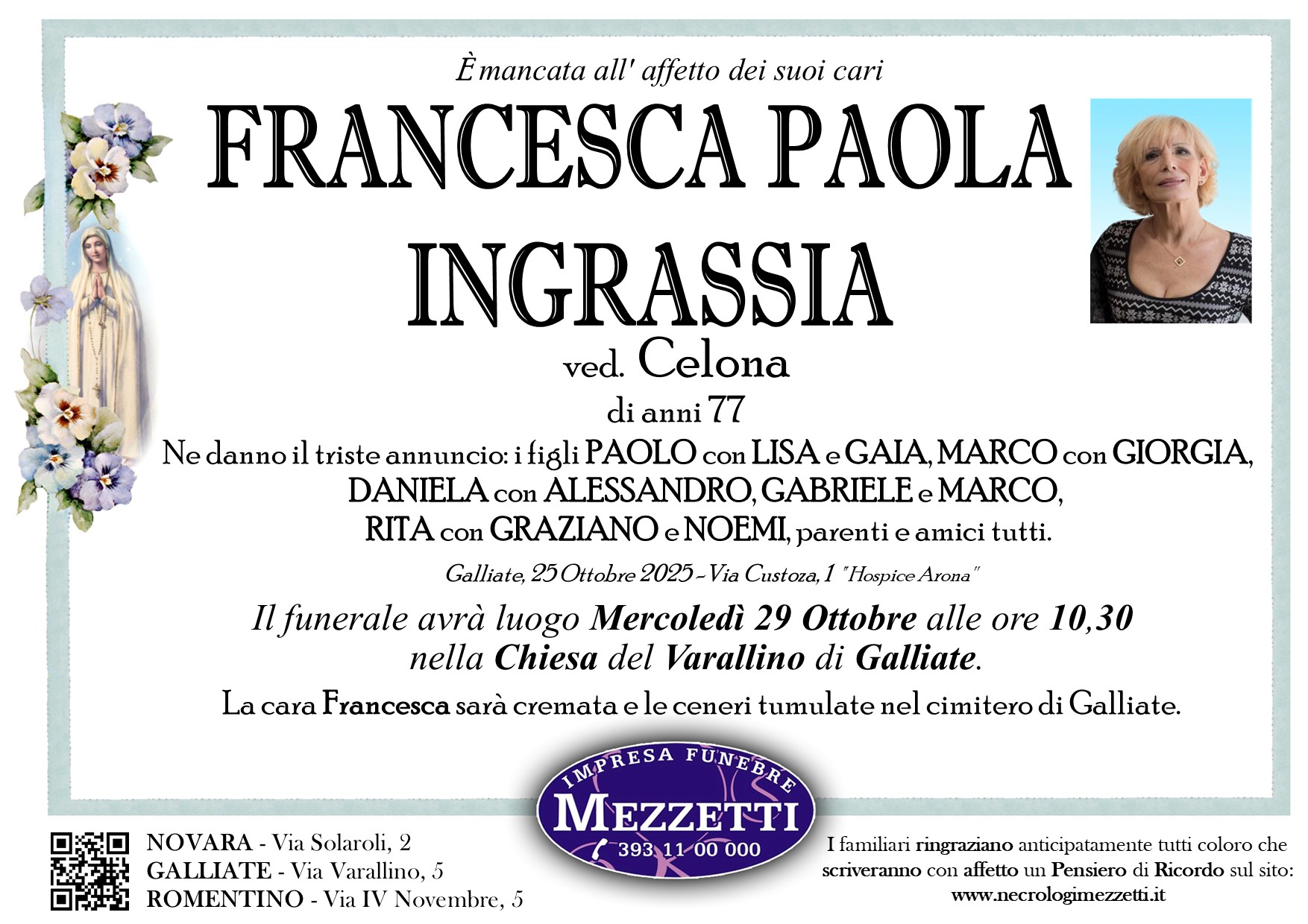 I familiari ringraziano anticipatamente tutti coloro che parteciperanno alla cerimonia funebre