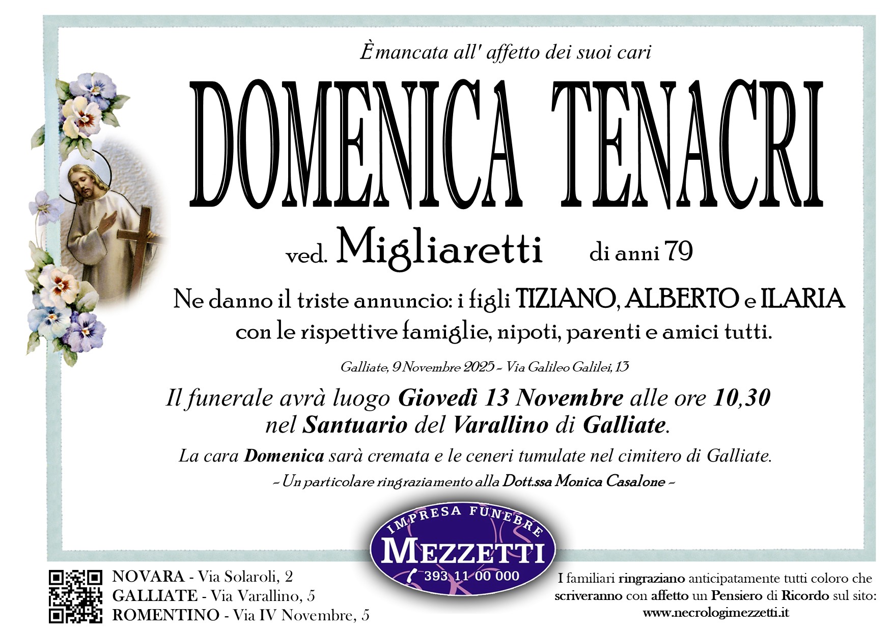 Cara Domenica ti ricorderemo sempre sorridente e gentile, ma anche per l' affetto e le belle parole da sempre dedicate alla nostra famiglia. Il nostro abbraccio a Tiziano, Alberto e Ilaria in questo momento di grande dolore.