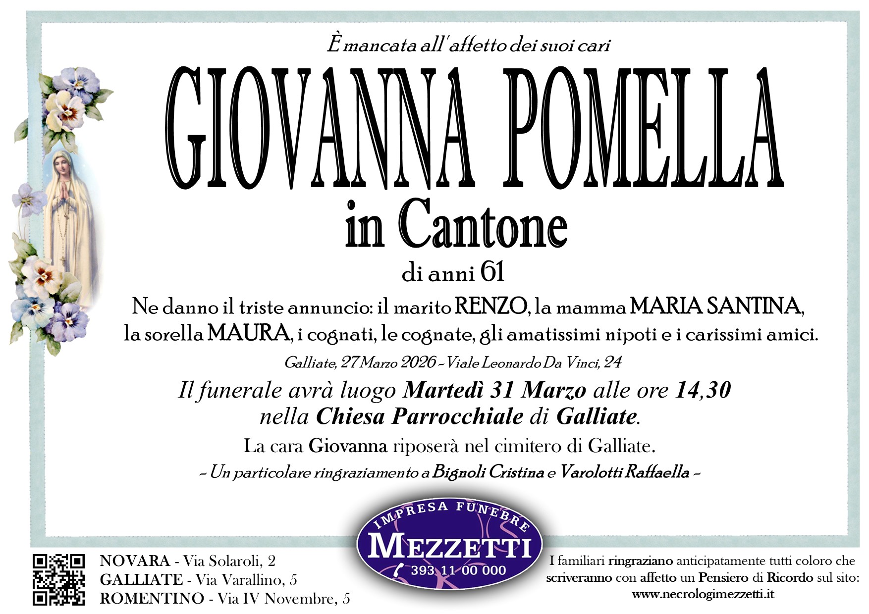 Giovanna cara, abbiamo sperato, abbiamo pregato, come per nostro figlio Matteo, ma Dio, per lui come per te, ha deciso diversamente. Non riusciamo a comprendere il PERCHÉ, ma soltanto accettare la Sua volontà, pur nel dramma della malattia, della sofferenza e della morte. Ora sei fra le Sue braccia, senza più soffrire. A noi resta il ricordo e il rimpianto. Riposa in pace. Andreina e Marco Vecchio