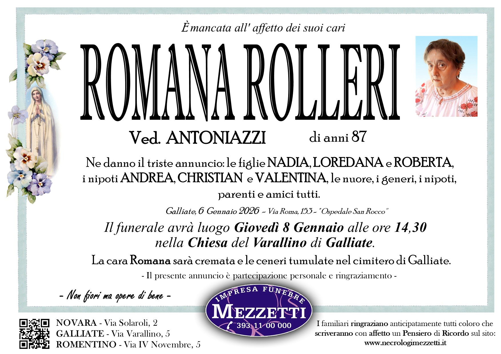I familiari ringraziano anticipatamente tutti coloro che parteciperanno alla cerimonia funebre