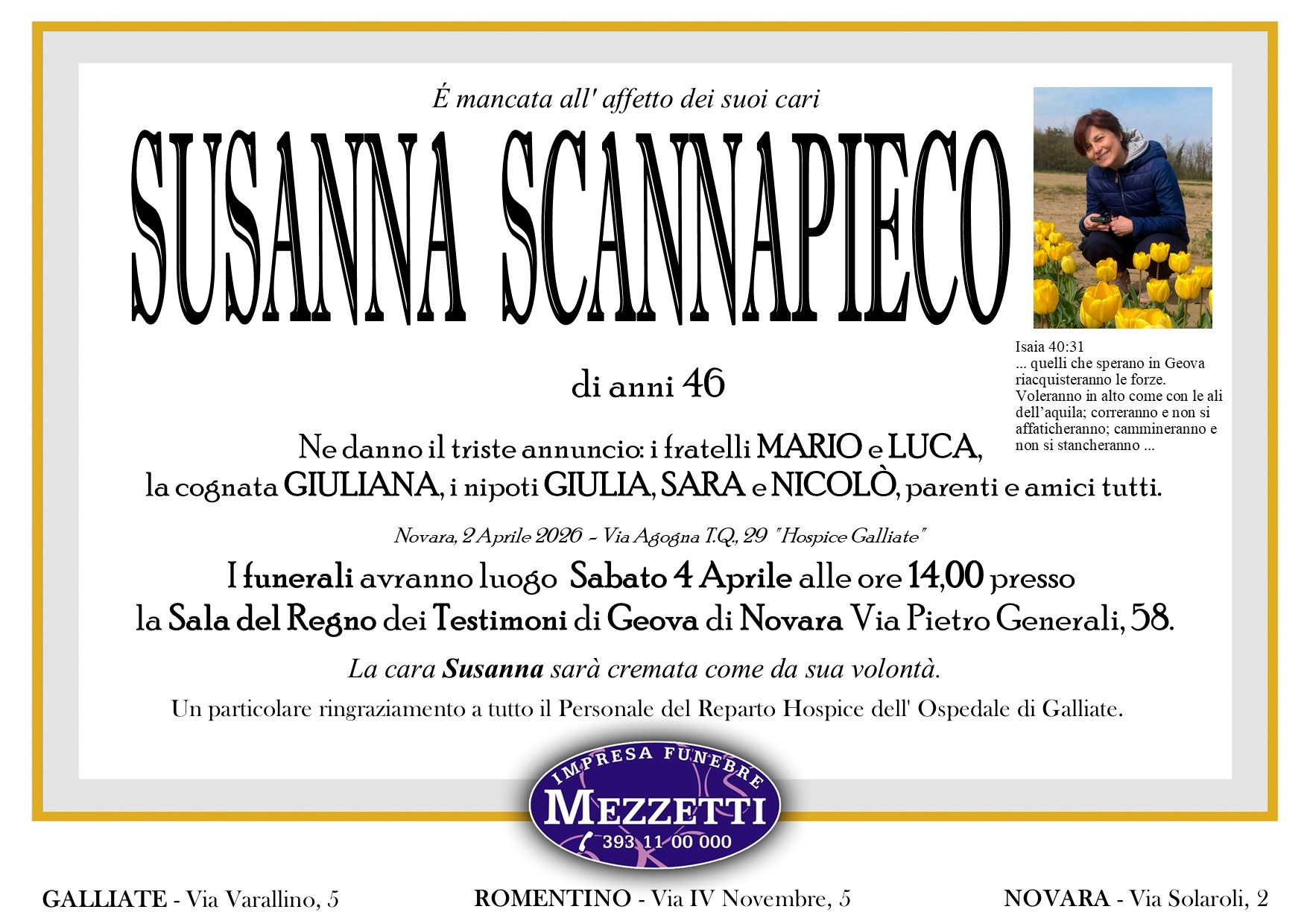 I familiari ringraziano anticipatamente tutti coloro che parteciperanno alla cerimonia funebre