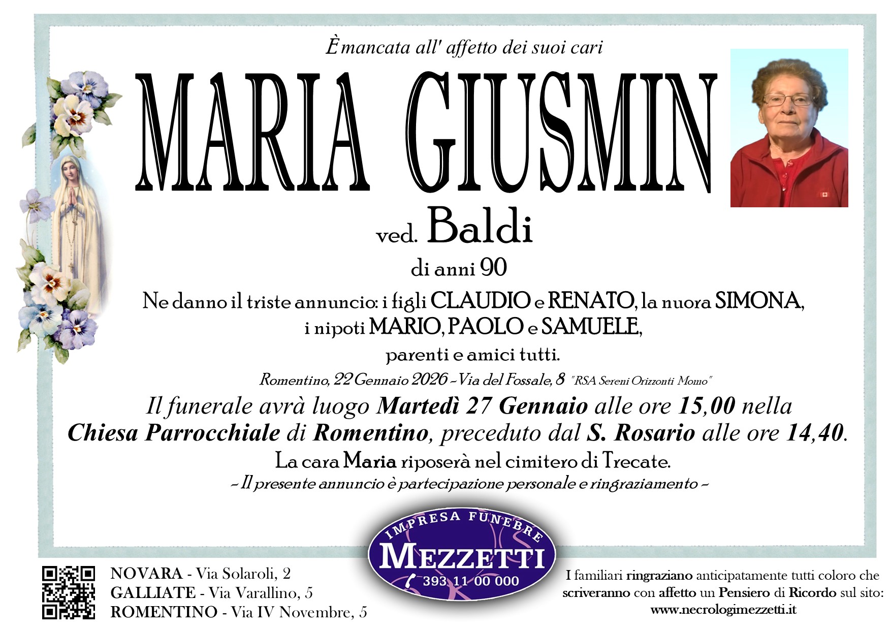 I familiari ringraziano anticipatamente tutti coloro che parteciperanno alla cerimonia funebre