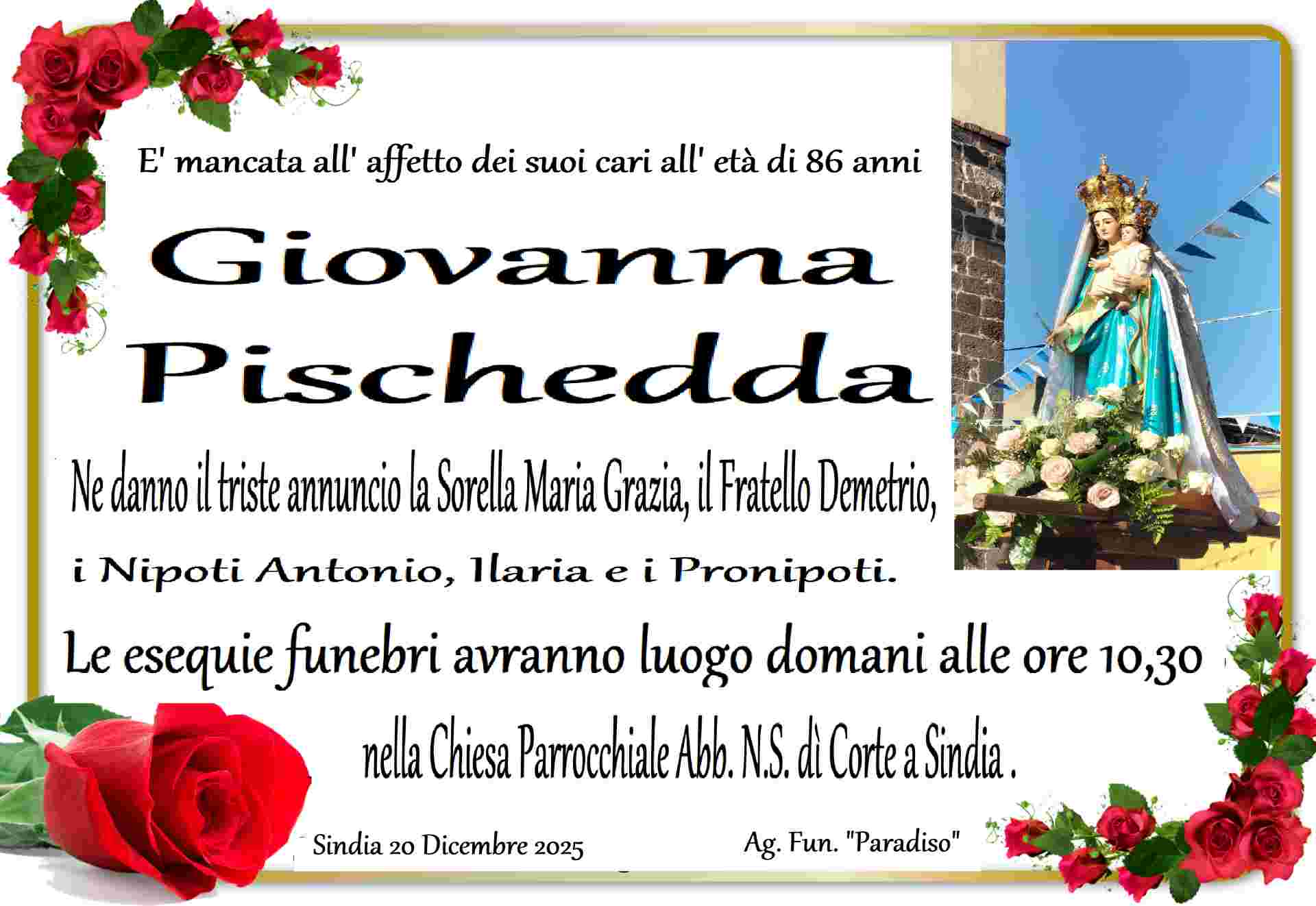 Profondamente addolorata faccio le mie più sentite condoglianze a Maria Grazia e Demetrio per la scomparsa della cara sorella Giovanna, sentite condoglianze Giovannina Cappai