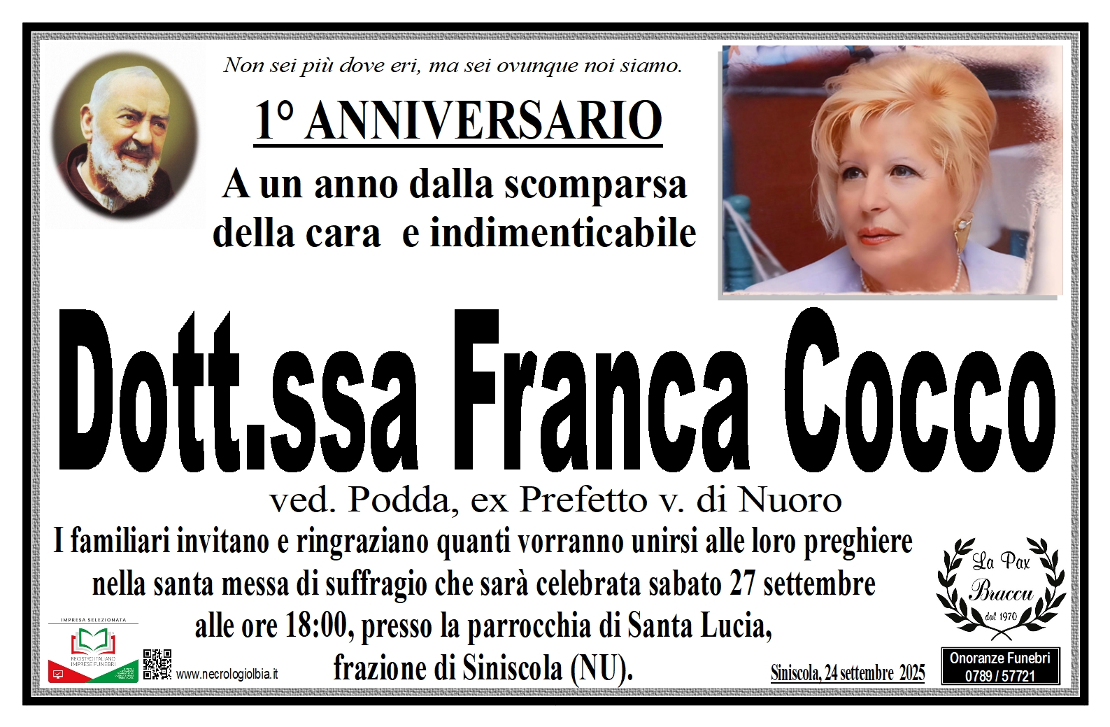 I familiari ringraziano anticipatamente tutti coloro che parteciperanno alla cerimonia funebre