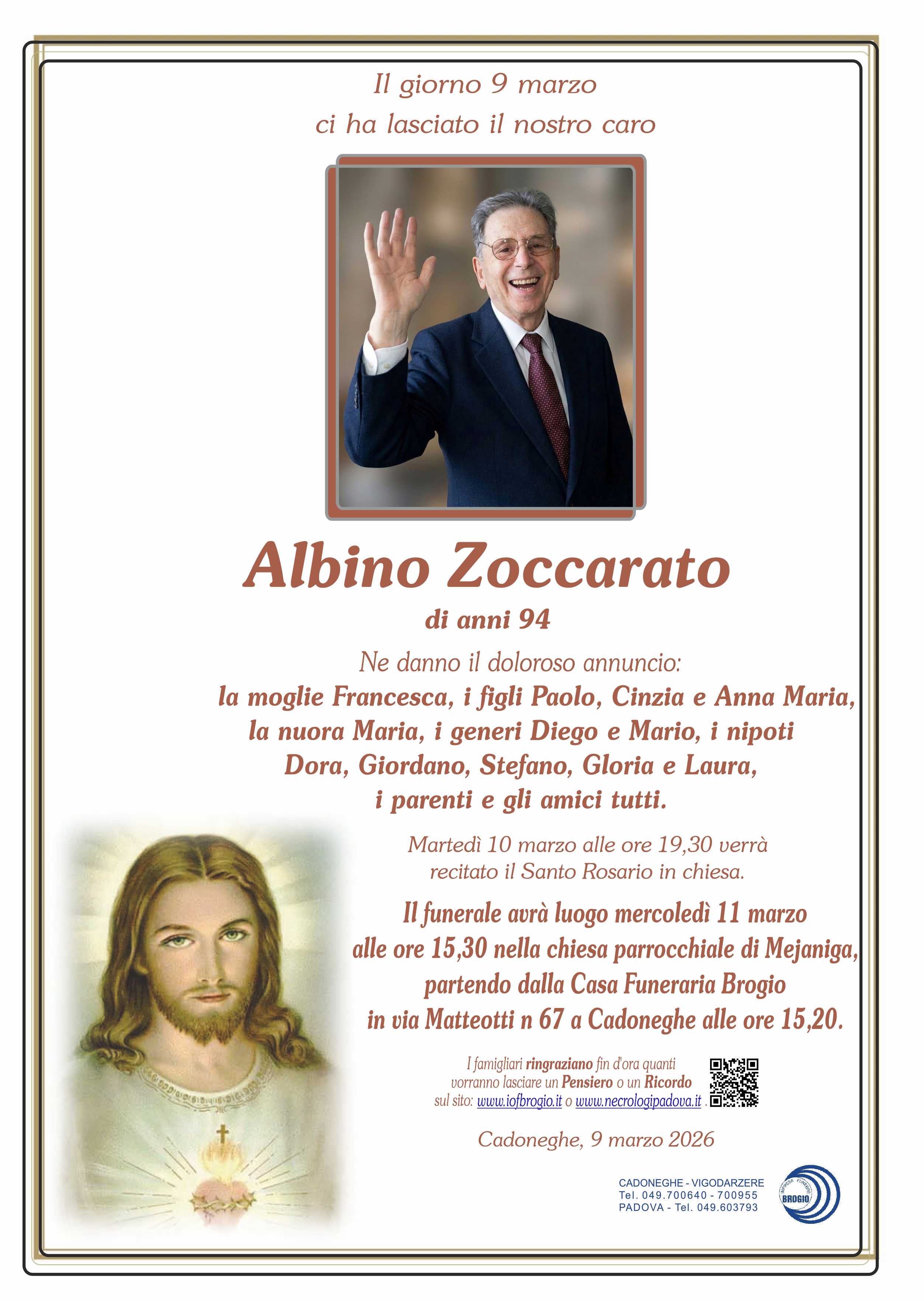 I familiari ringraziano anticipatamente tutti coloro che parteciperanno alla cerimonia funebre