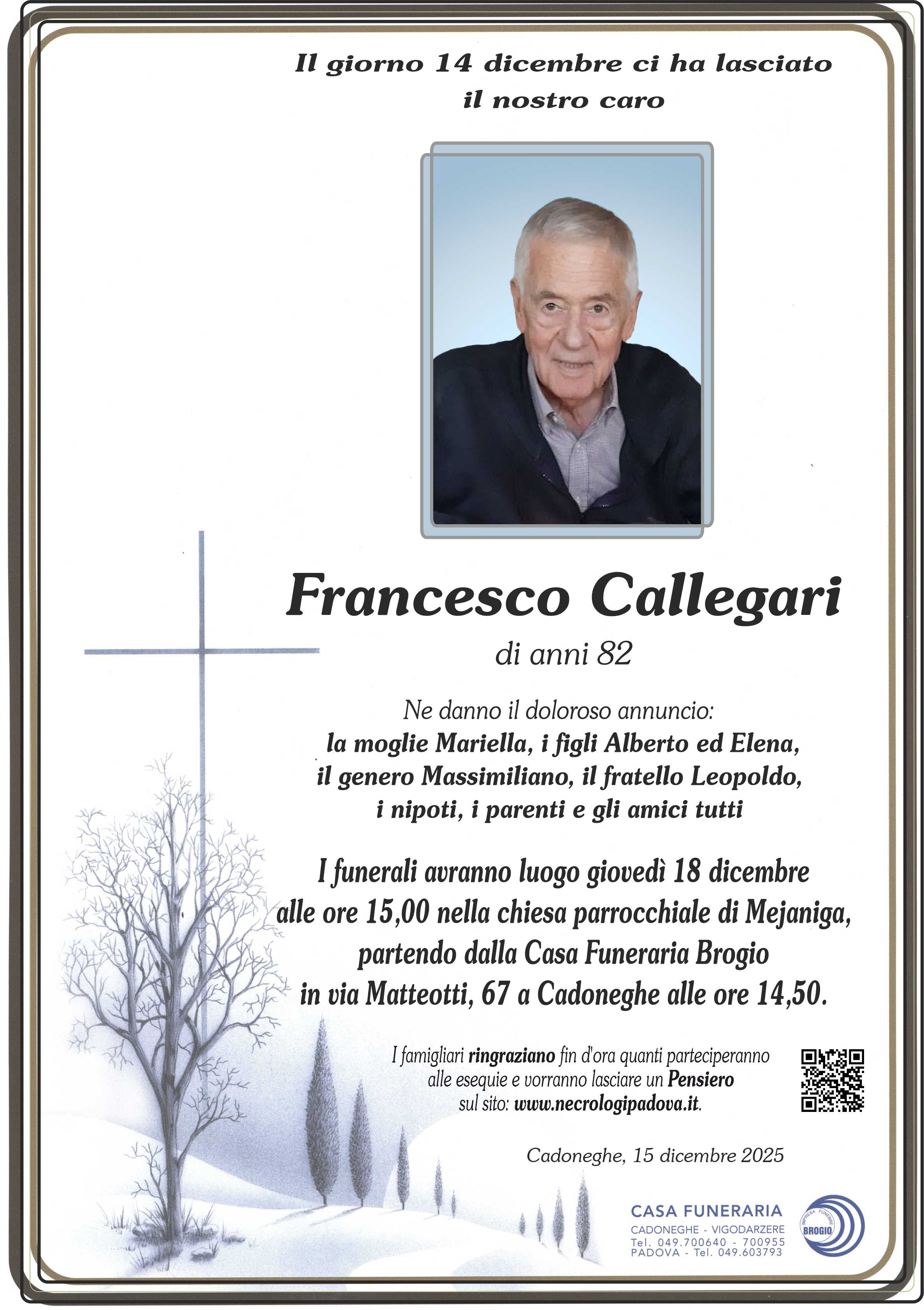 I familiari ringraziano anticipatamente tutti coloro che parteciperanno alla cerimonia funebre