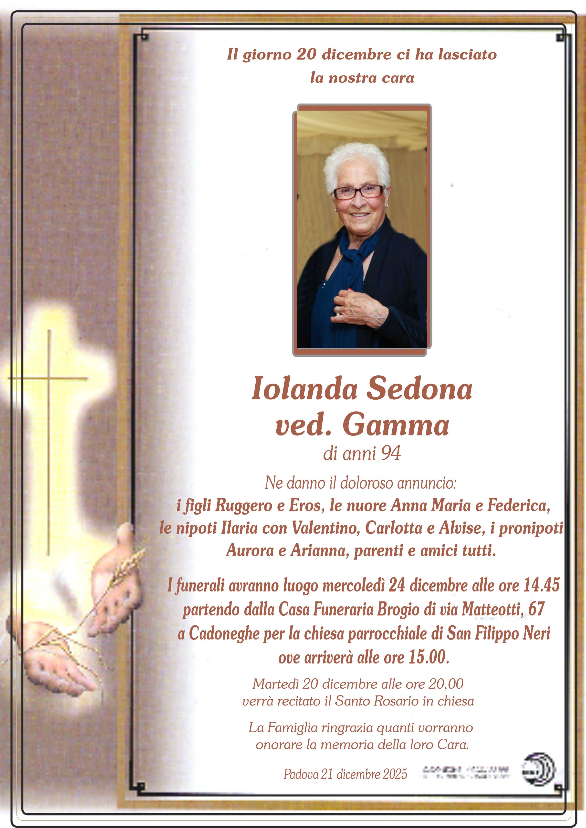 I familiari ringraziano anticipatamente tutti coloro che parteciperanno alla cerimonia funebre