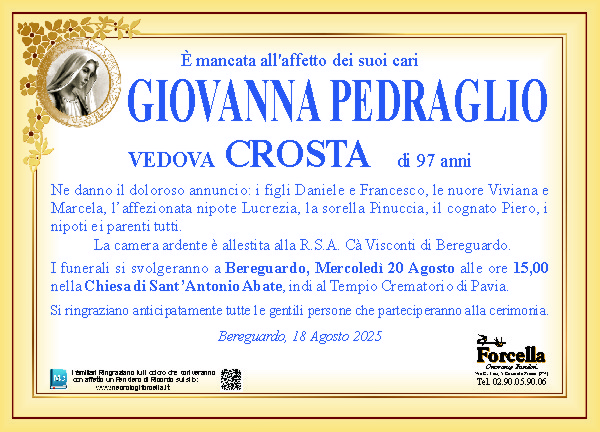I familiari ringraziano anticipatamente tutti coloro che parteciperanno alla cerimonia funebre