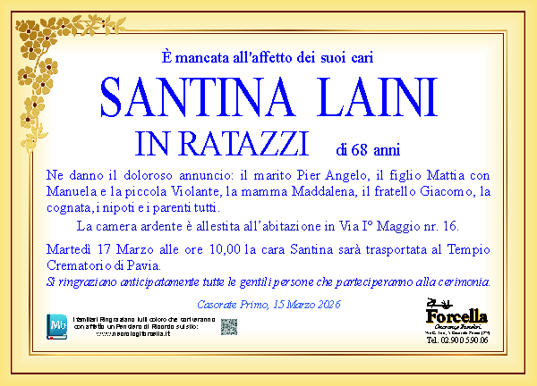 I familiari ringraziano anticipatamente tutti coloro che parteciperanno alla cerimonia funebre