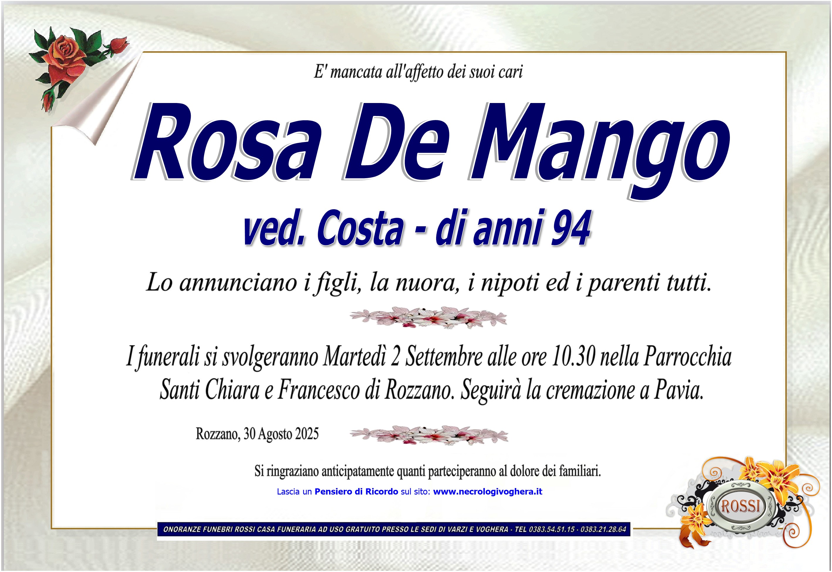 I familiari ringraziano anticipatamente tutti coloro che parteciperanno alla cerimonia funebre