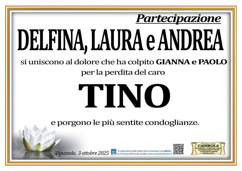 Cari Gianna e Paolo, addolorati per la vostra perdita porgiamo le nostre più sentite condoglianze. Preghiamo per Tino. Con affetto, Marisa con Pino e Monica