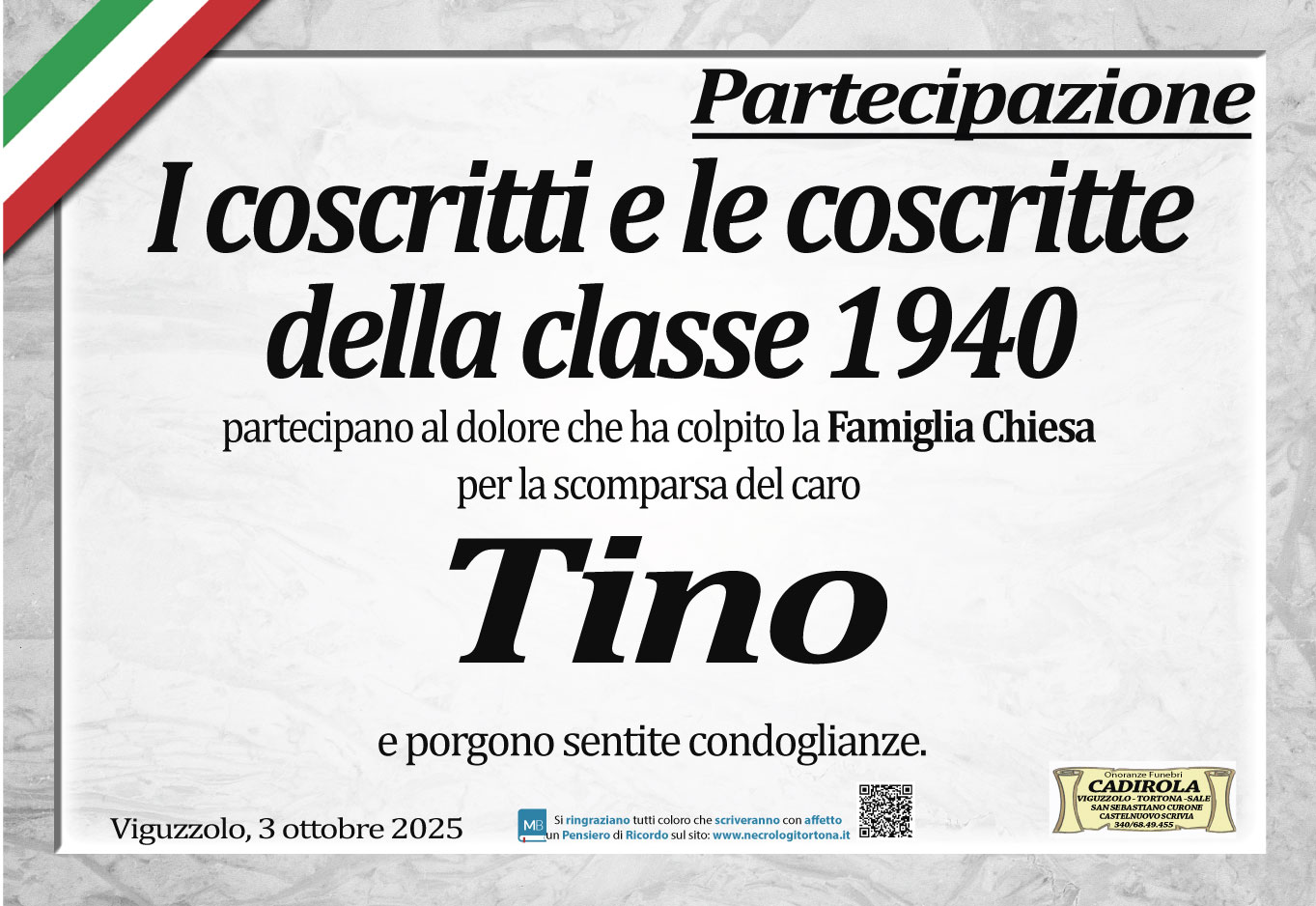 Sentite condoglianze alla famiglia!