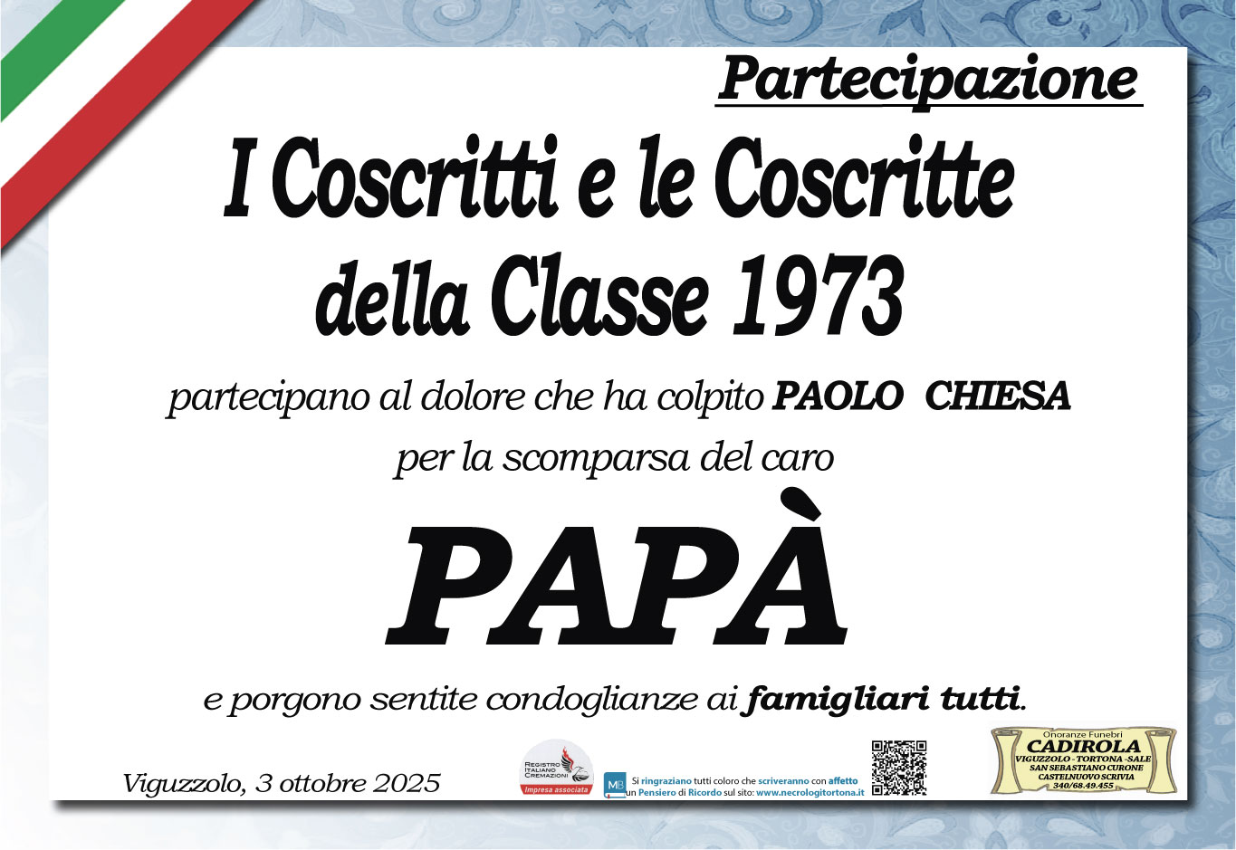 I familiari ringraziano anticipatamente tutti coloro che parteciperanno alla cerimonia funebre