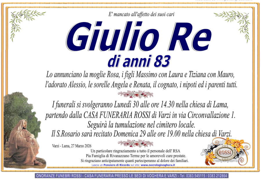 I familiari ringraziano anticipatamente tutti coloro che parteciperanno alla cerimonia funebre