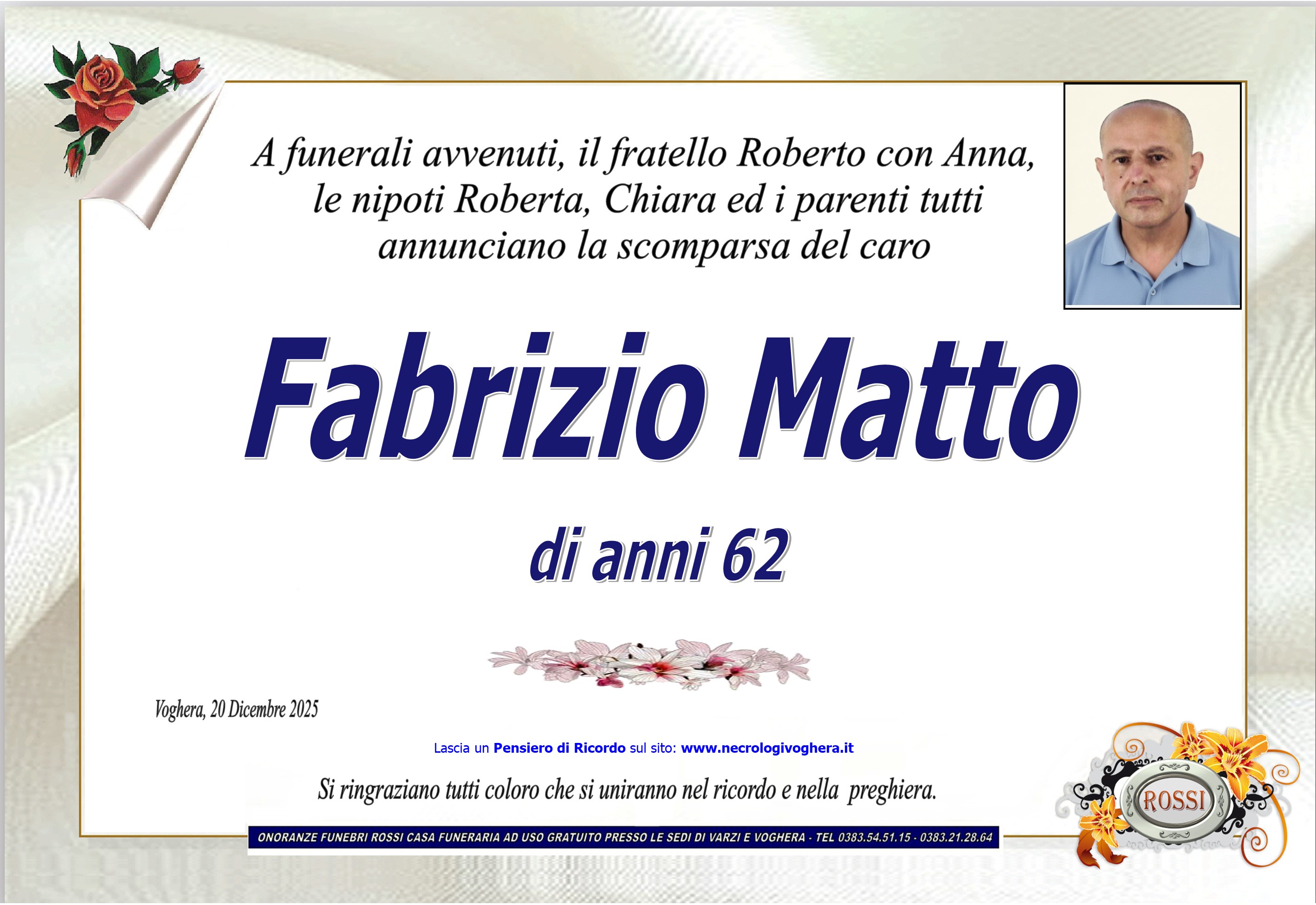 I familiari ringraziano anticipatamente tutti coloro che parteciperanno alla cerimonia funebre