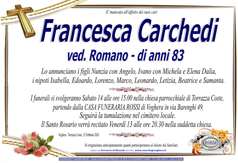 I familiari ringraziano anticipatamente tutti coloro che parteciperanno alla cerimonia funebre