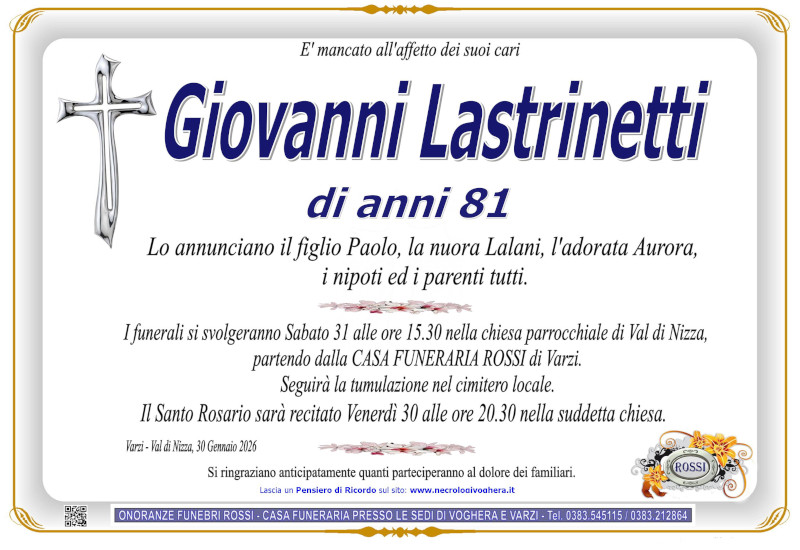 I familiari ringraziano anticipatamente tutti coloro che parteciperanno alla cerimonia funebre