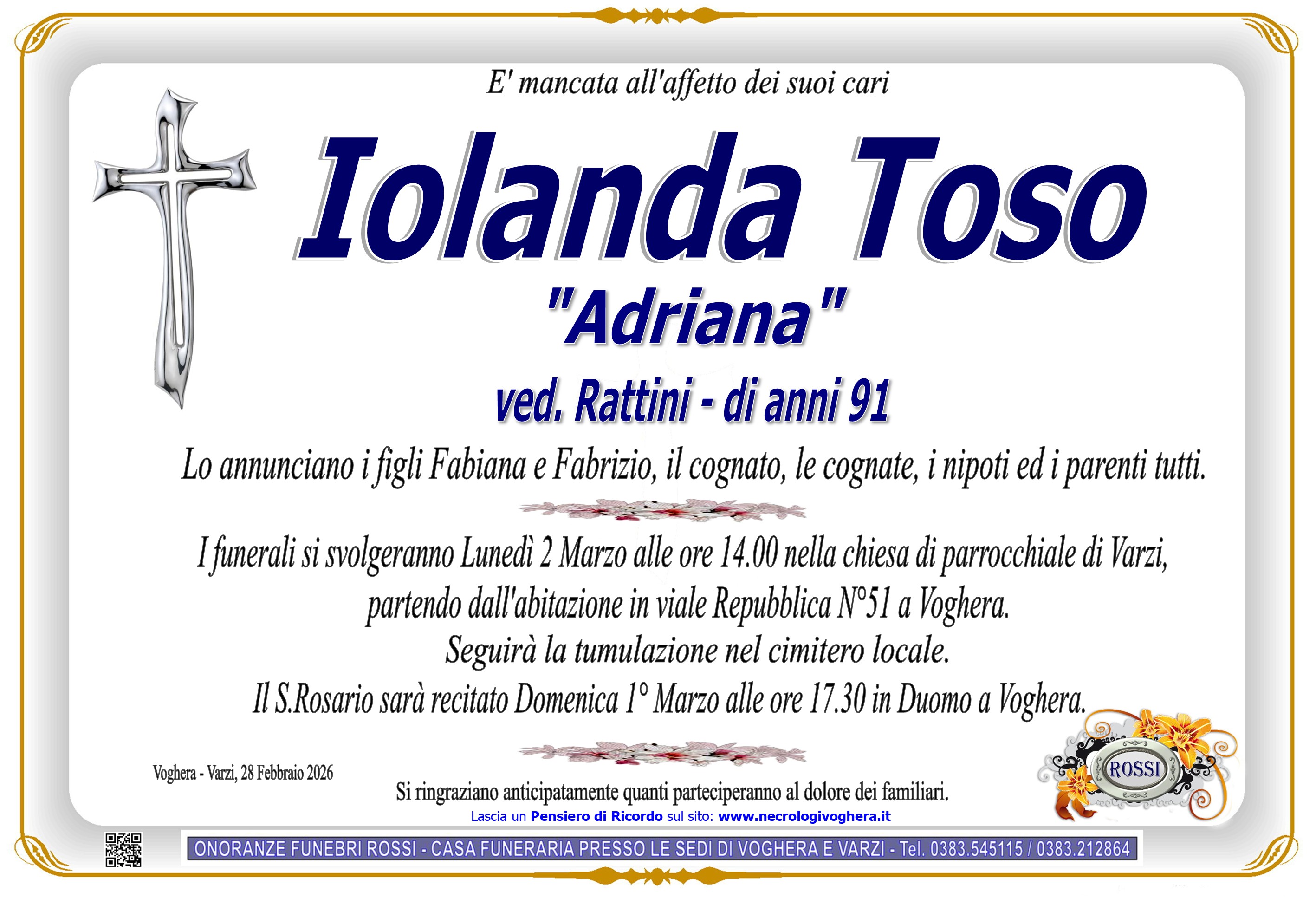 I familiari ringraziano anticipatamente tutti coloro che parteciperanno alla cerimonia funebre