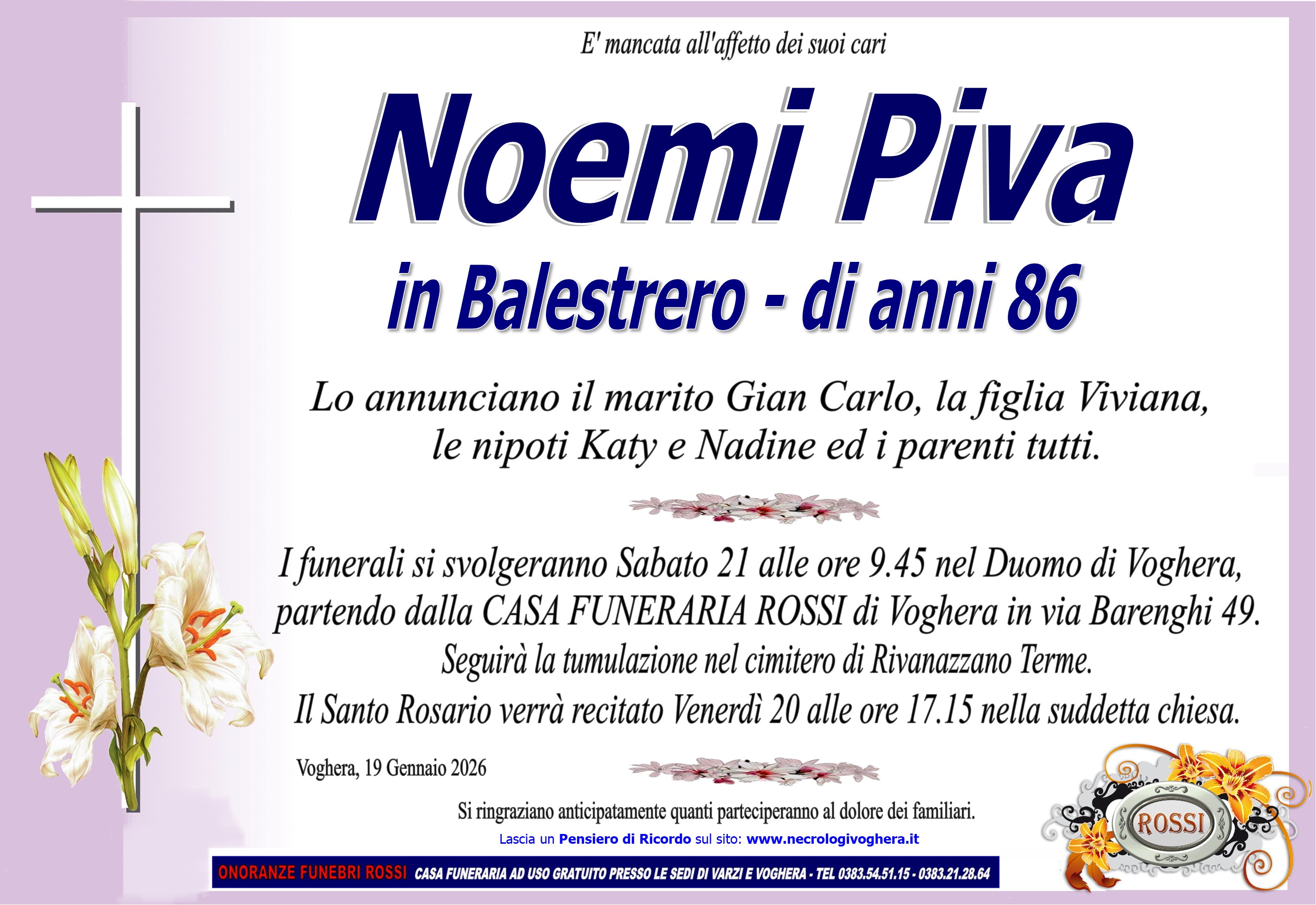 I familiari ringraziano anticipatamente tutti coloro che parteciperanno alla cerimonia funebre