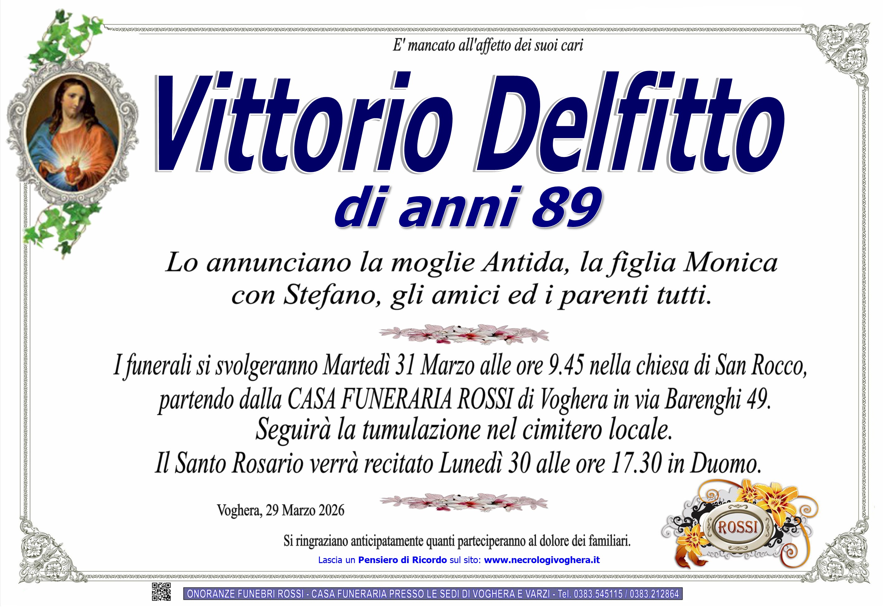 I familiari ringraziano anticipatamente tutti coloro che parteciperanno alla cerimonia funebre