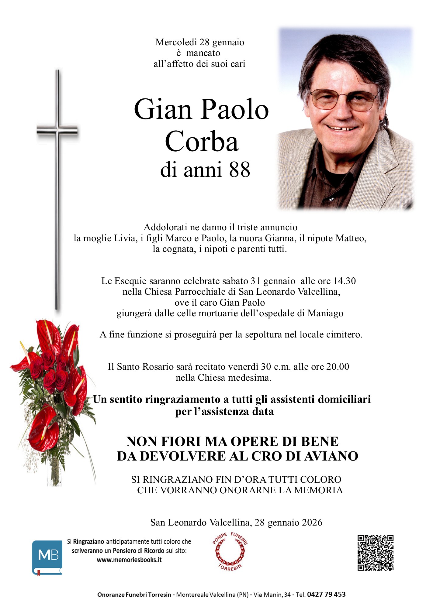 Apprendo con dispiacere la scomparsa di Giampaolo. La nostra famiglia si è avvalsa più volte delle sue competenze professionali. Era professionista preparato, ma anche vicino alle esigenze del cliente e pronto a dare consigli. Alla moglie, ai figli e tutti coloro che lo hanno amato in vita porgo le mie condoglianze. Ercolina e Teresa Magris