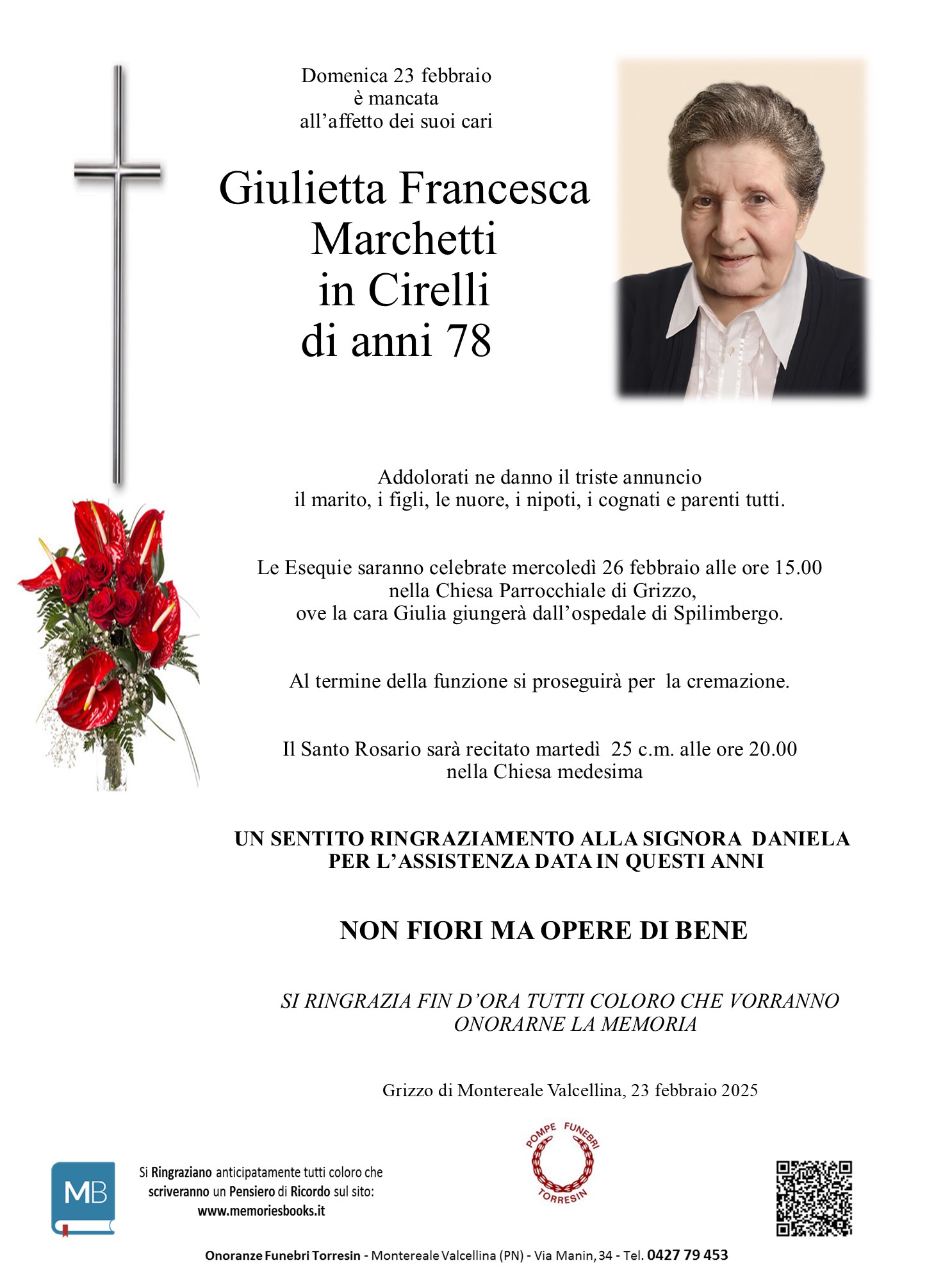 I familiari ringraziano anticipatamente tutti coloro che parteciperanno alla cerimonia funebre