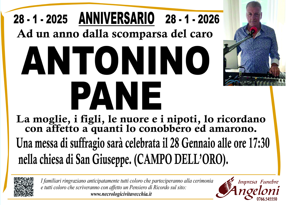 Una messa di suffragio sarà celebrata il giorno 28 Gennaio
