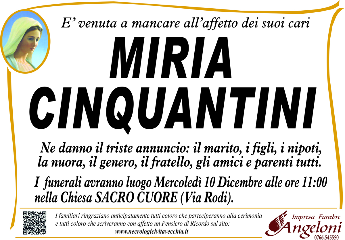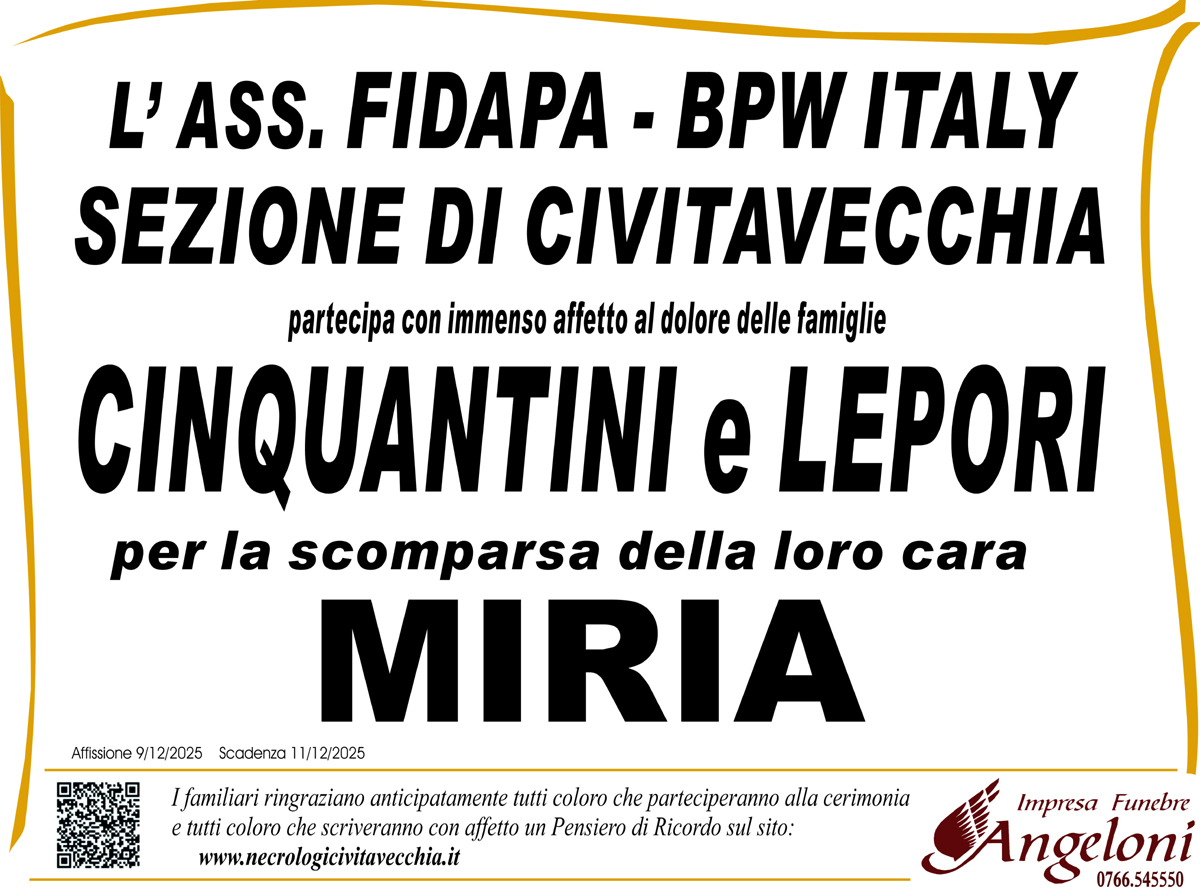 Ho saputo solo stasera la triste notizia. Sono tanto addolorata e la mente va ai tanti anni passati insieme al Baccelli affrontando con passione la nostra difficile professione.Miria era sempre elegante, raffinata mai eccessiva in tutto. Il suo ricordo è vivo come sicuramente lo è in quanti l'hanno conosciuta,amata ed apprezzata Condoglianze sentite ai suoi cari di cui parlava sempre con amore e orgoglio