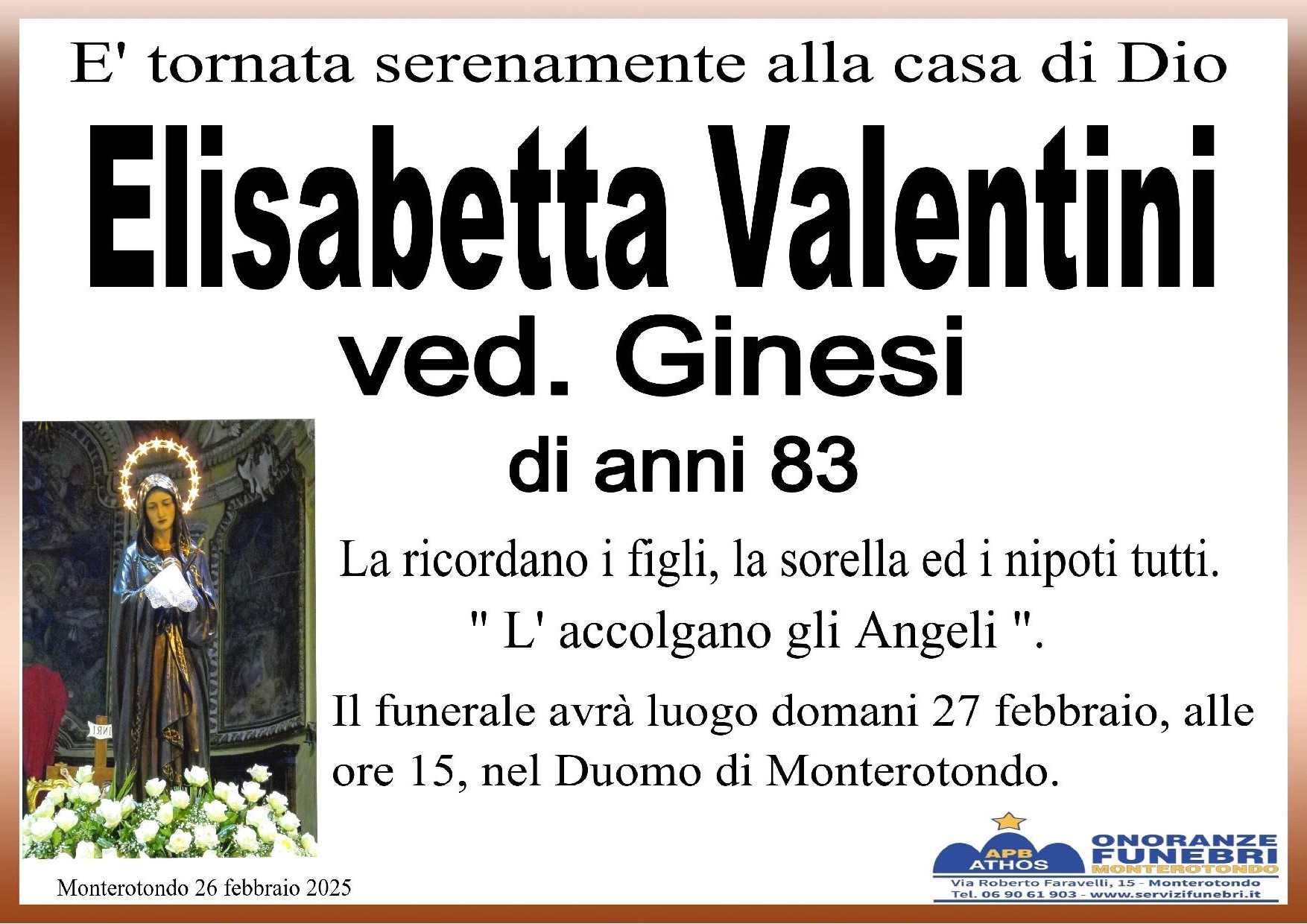 I familiari ringraziano anticipatamente tutti coloro che parteciperanno alla cerimonia funebre