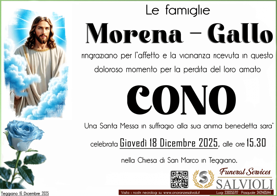 Impossibilitato partecipare al rito funebre, con affetto e partecipazione , invio ai famigliari tutti, le più sentite condoglianze per la dipartita del caro Cono. 🙏