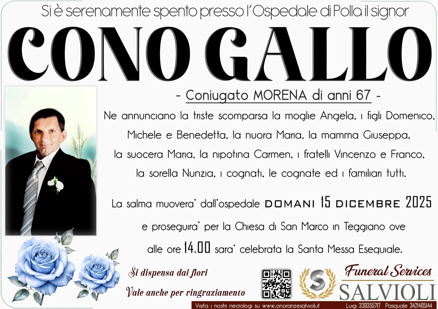 Esprimo a tutti i Familiari le mie sentite condoglianze. Paolo Gallo