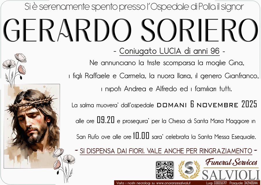 I familiari ringraziano anticipatamente tutti coloro che parteciperanno alla cerimonia funebre