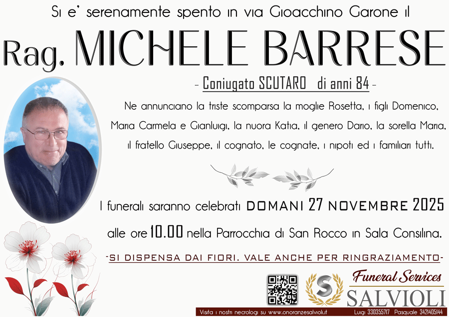 I familiari ringraziano anticipatamente tutti coloro che parteciperanno alla cerimonia funebre