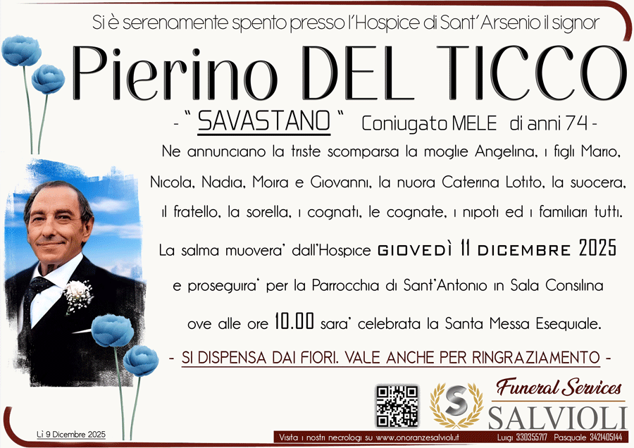I familiari ringraziano anticipatamente tutti coloro che parteciperanno alla cerimonia funebre