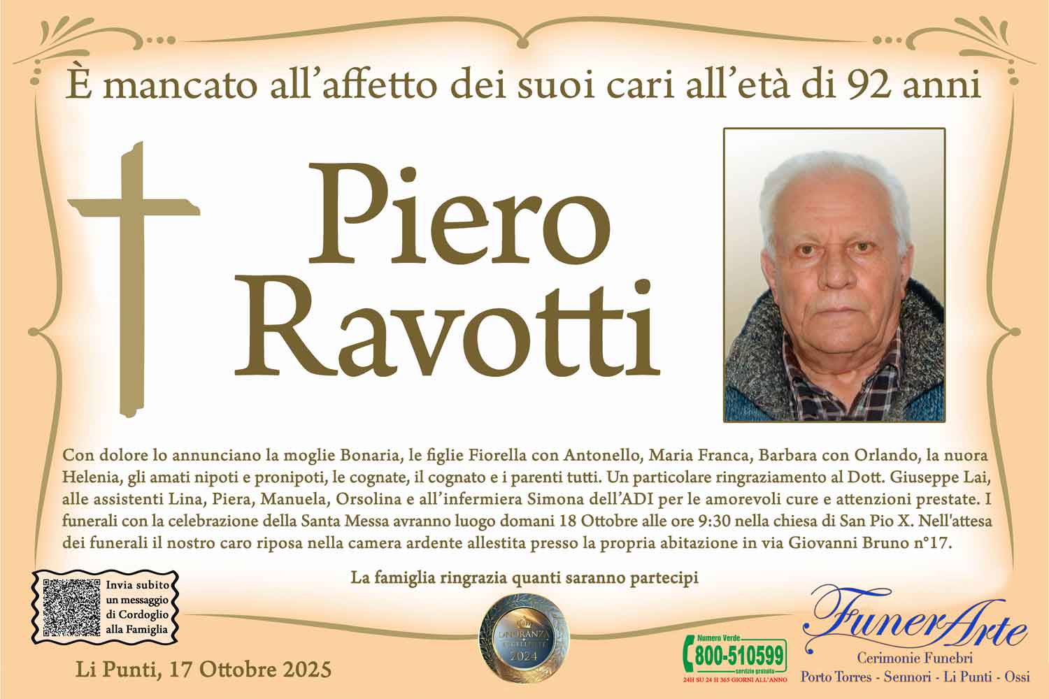 Con dolore lo annunciano la moglie Bonaria, le figlie Fiorella con Antonello, Maria Franca, Barbara con Orlando, la nuora Helenia, gli amati nipoti e pronipoti, le cognate, il cognato e i parenti tutti. Un particolare ringraziamento al Dott. Giuseppe Lai, alle assistenti Lina, Piera, Manuela, Orsolina e all’infermiera Simona dell’ADI per le amorevoli cure e attenzioni prestate. I funerali con la celebrazione della Santa Messa avranno luogo domani 18 Ottobre alle ore 9:30 nella chiesa di San Pio X. Nell'attesa dei funerali il nostro caro riposa nella camera ardente allestita presso la propria abitazione in via Giovanni Bruno n°17.