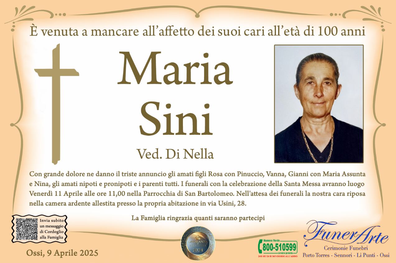 Con grande dolore ne danno il triste annuncio gli amati figli Rosa con Pinuccio, Vanna, Gianni con Maria Assunta e Nina, gli amati nipoti e pronipoti e i parenti tutti. I funerali con la celebrazione della Santa Messa avranno luogo Venerdì 11 Aprile alle ore 11,00 nella Parrocchia di San Bartolomeo. Nell'attesa dei funerali la nostra cara riposa nella camera ardente allestita presso la propria abitazione in via Usini, 28.