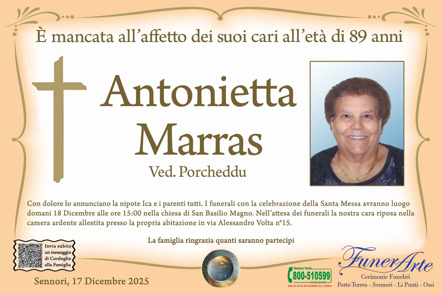 I familiari ringraziano anticipatamente tutti coloro che parteciperanno alla cerimonia funebre
