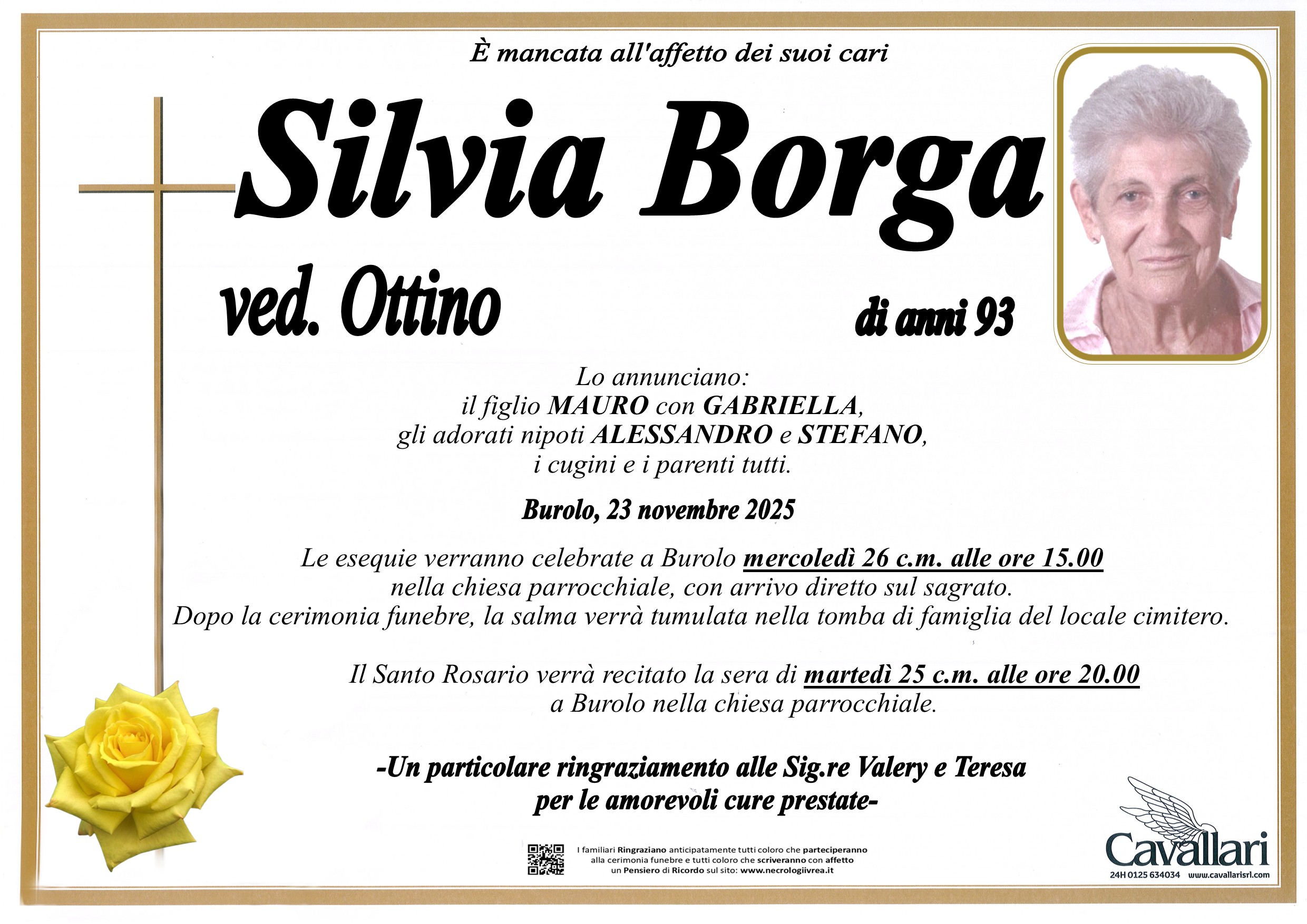 I familiari ringraziano anticipatamente tutti coloro che parteciperanno alla cerimonia funebre