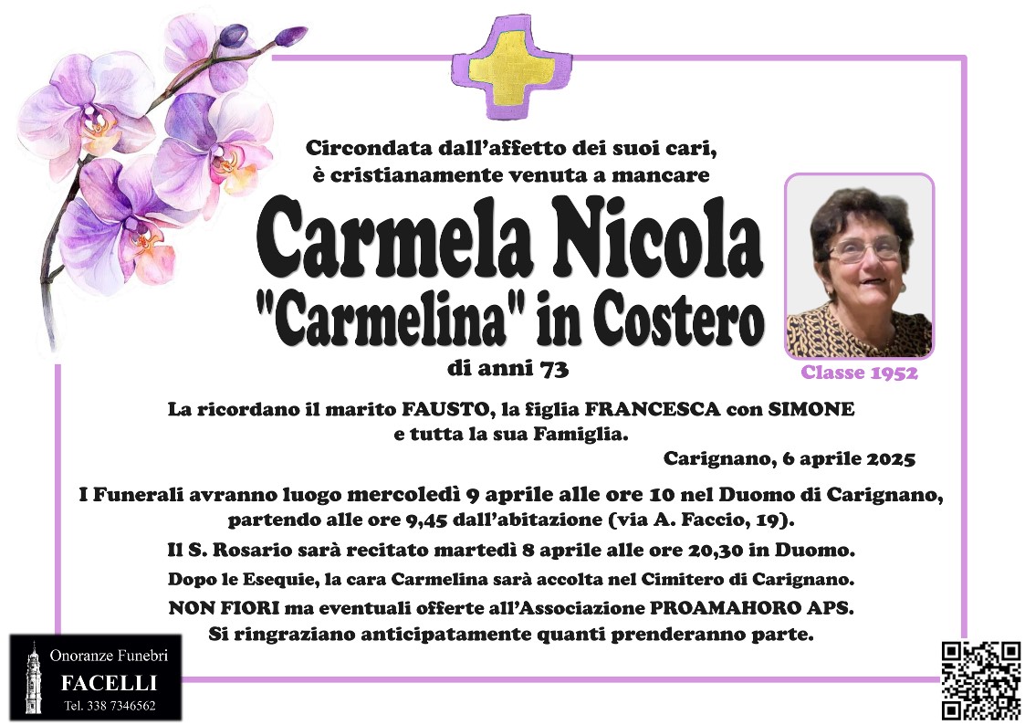 Ciao Carmelina, mando a te un ultimo saluto e un abbraccio ai tuoi familiari. Grazie per il tuo spirito indomito e la tua tenacia nel perseguire le tue idee, sei stata un grande esempio e sono stata contenta di aver lavorato ed imparato da te.
