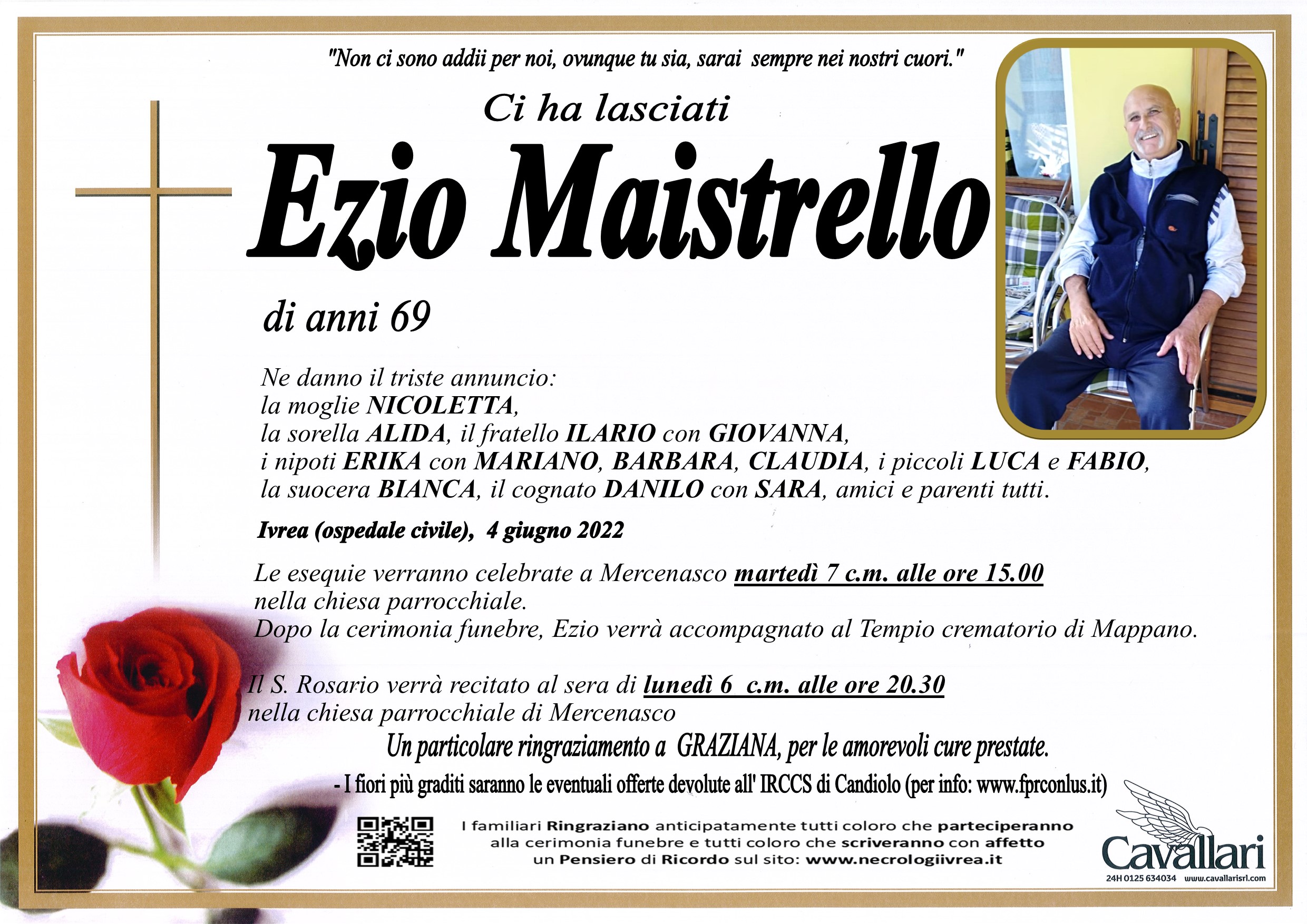 I familiari ringraziano anticipatamente tutti coloro che parteciperanno alla cerimonia funebre