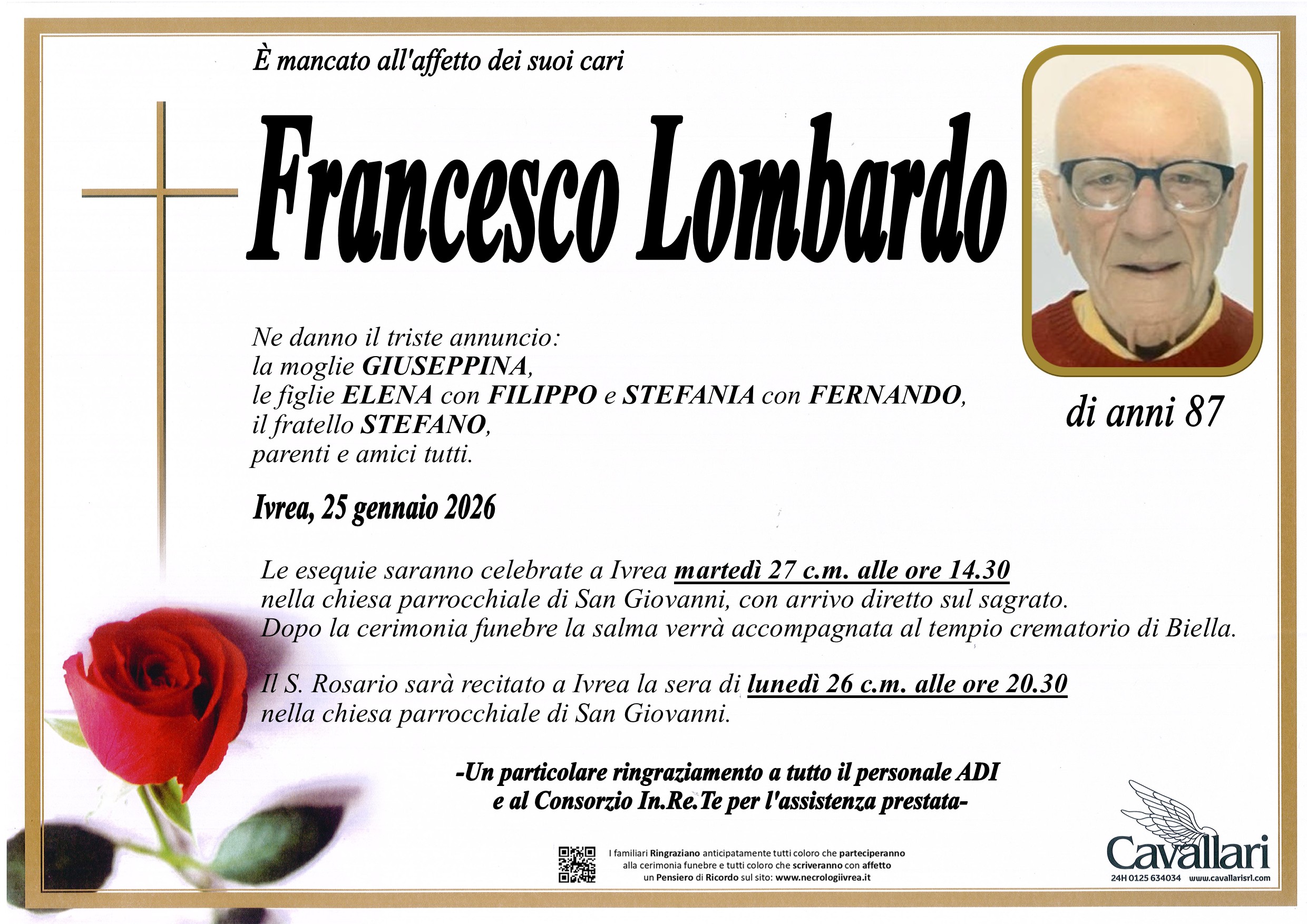 I familiari ringraziano anticipatamente tutti coloro che parteciperanno alla cerimonia funebre