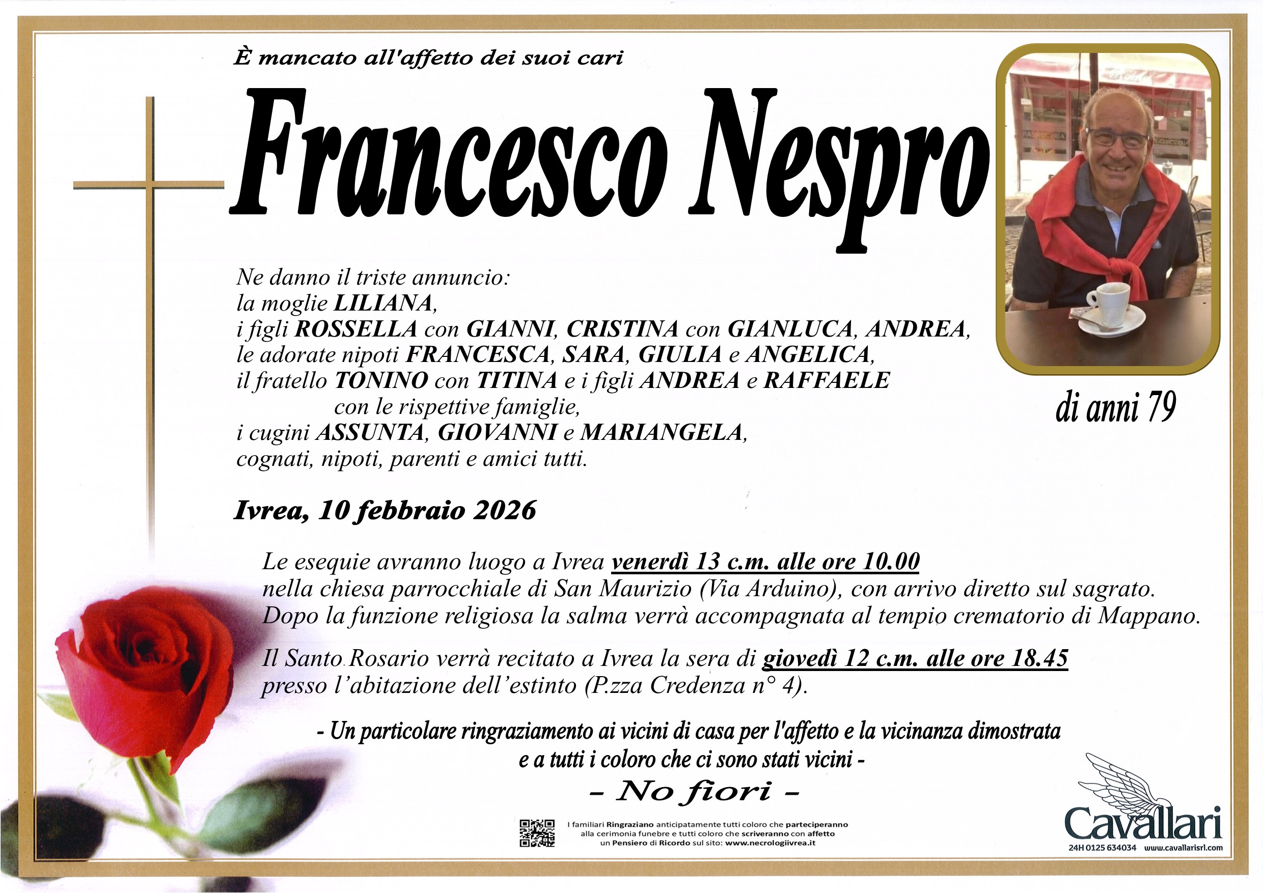 I familiari ringraziano anticipatamente tutti coloro che parteciperanno alla cerimonia funebre