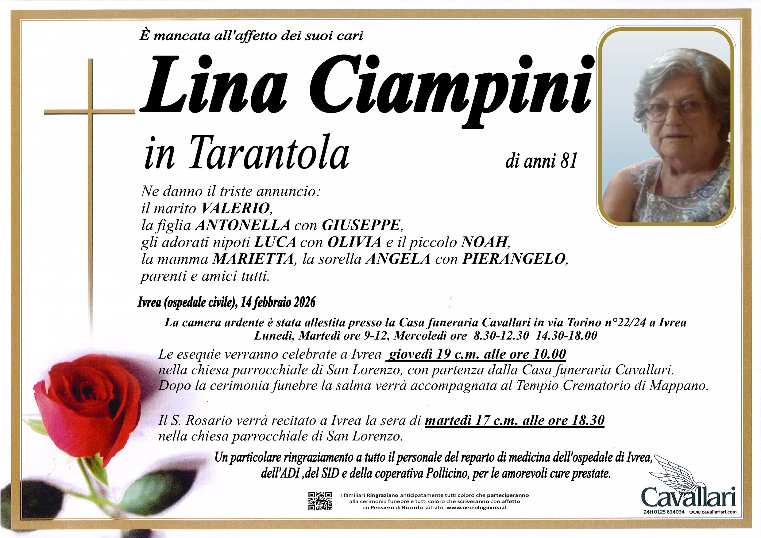 I familiari ringraziano anticipatamente tutti coloro che parteciperanno alla cerimonia funebre