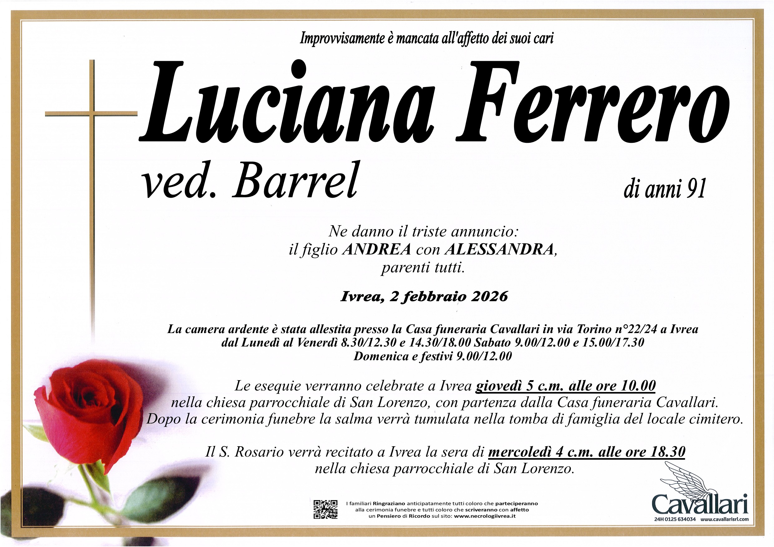 I familiari ringraziano anticipatamente tutti coloro che parteciperanno alla cerimonia funebre