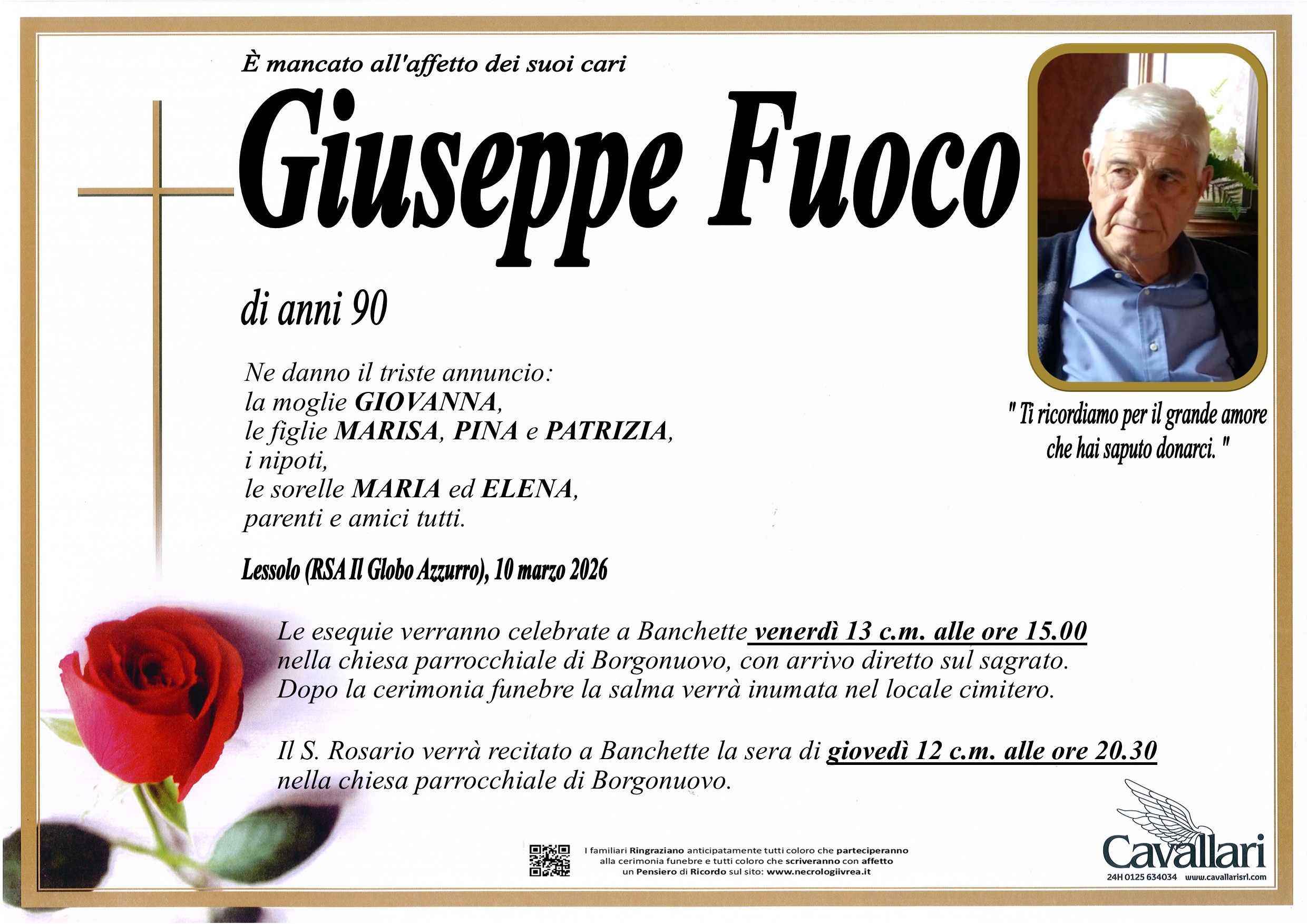 I familiari ringraziano anticipatamente tutti coloro che parteciperanno alla cerimonia funebre